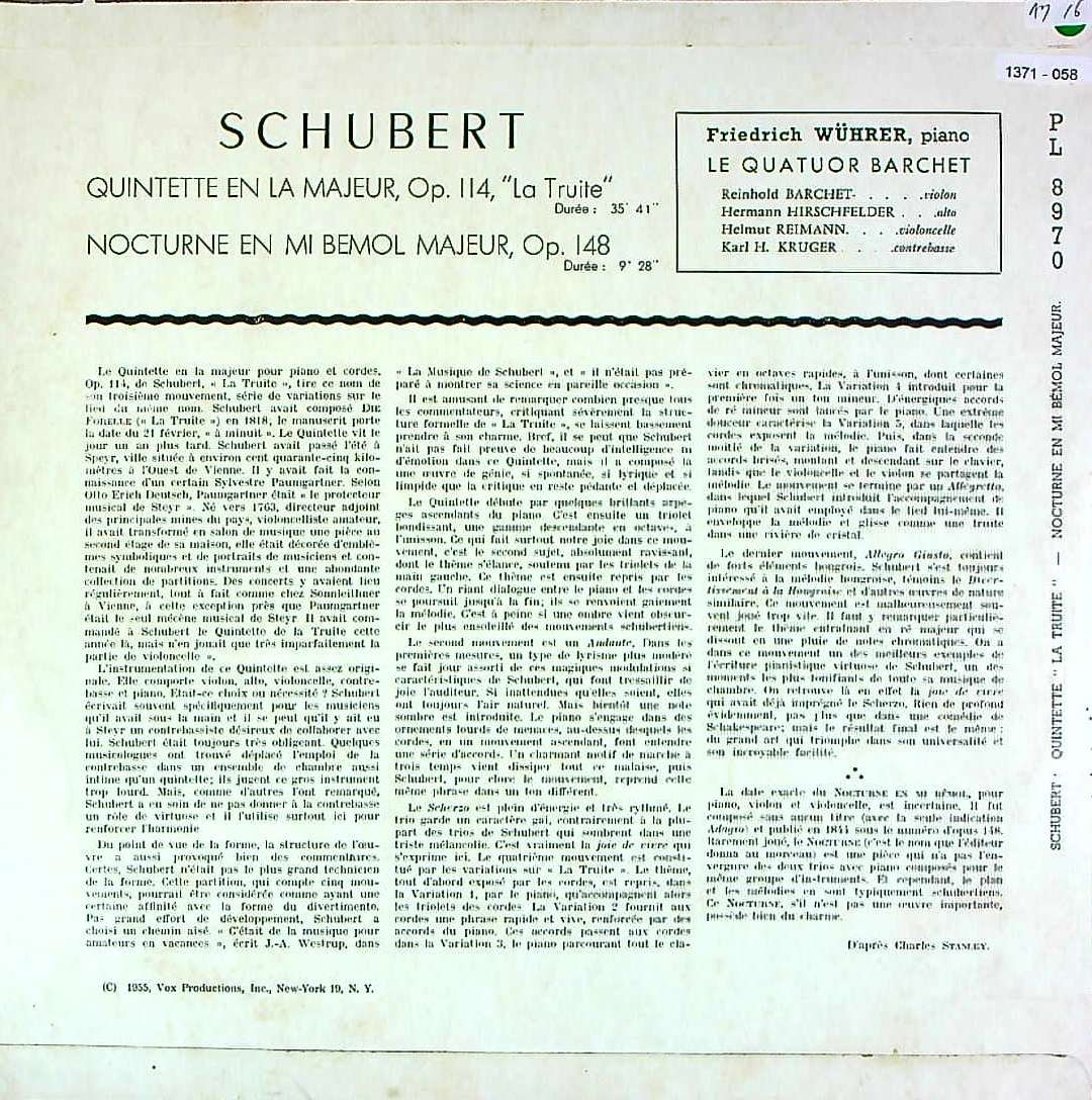 商品コード:1371-058[Pathé-VOX] F.ヴューラー(pf) バルヒェットQt.メンバー/ シューベルト:Pf五重奏曲「鱒」, Pf三重奏曲「ノットゥルノ」