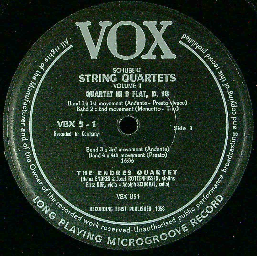商品詳細:エンドレスQt.はバルヒェットQt.の後継団体。1962年バルヒェットQt.のリーダーであったR.バルヒェットが亡くなったことで、当時第2Vnだったハインツ・エンドレスがリーダーとなり他のメンバーを率いた。そこで名称もエンドレスQt.に変更した。レーベルもそのまま継承してVOXにバルヒェットQt.時代に録音が叶わなかったシューベルトの弦楽四重奏曲全集の全曲録音を開始した。どうしてもバルヒェットQt.が優先で残った曲をエンドレスQt.が受け持ったという印象が強い。従って、シューベルトはエンドレスQt.の担当となったが、今、21世紀的な観点で眺めると、エンドレスQt.の四重奏団の能力はバルヒェットQt.以上のものがあるのではと思える。1960年代初期という時期に於いて、これだけ瑞々しくも味わい深いシューベルトはそう多くない!もしバルヒェットQt.が録音していたならもっと厳格で渋みの強い演奏になっていたことは間違いない。この録音を聴いた誰もがエンドレスQt.で良かったと思われるに違いない。VBX 4-6で全集化され発売。単売は存在しない。モノラル・オーディオファイルLP!