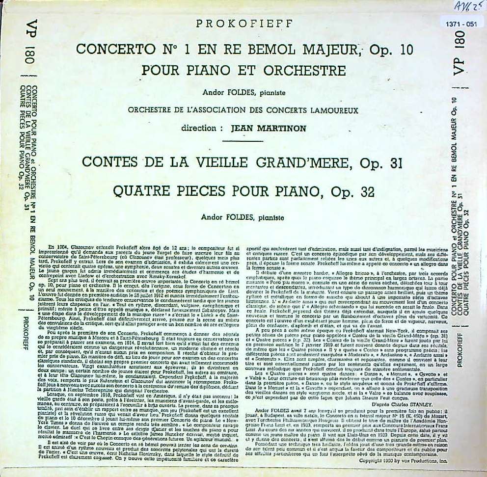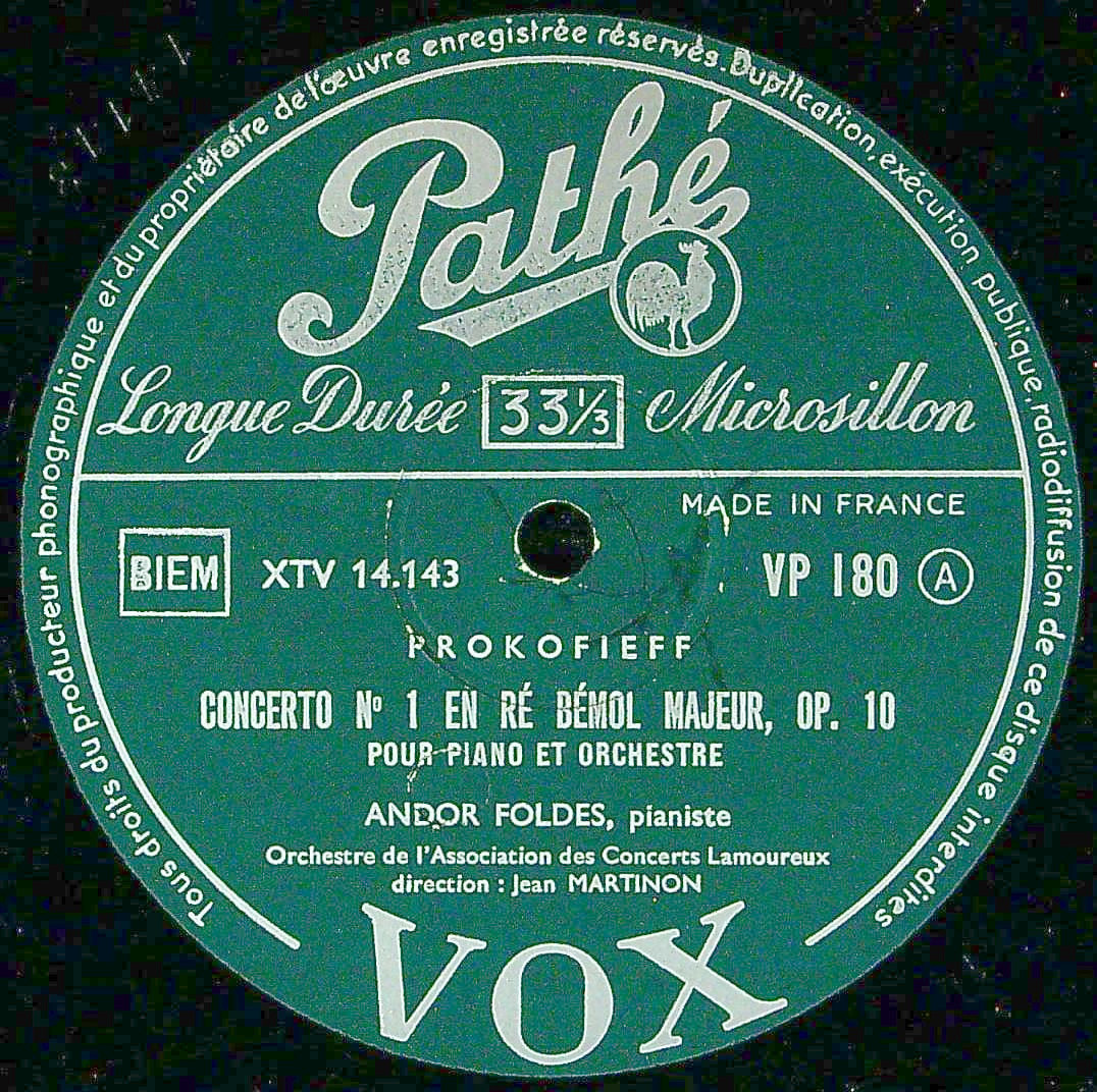 商品コード:1371-051[Pathé-VOX] A.フォルデシュ(pf)/ プロコフィエフ:Pf協奏曲1番, 年とった祖母のお話(Pf独奏), 4つの小品2(Pf独奏)