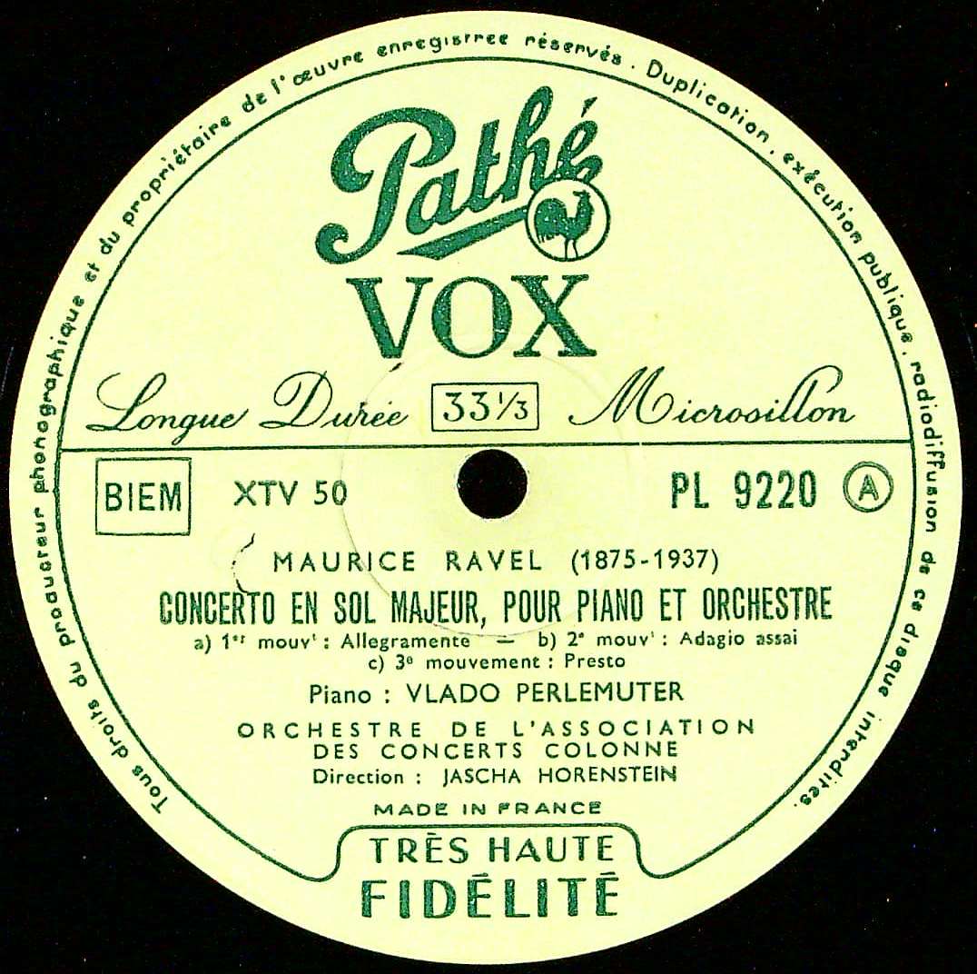 商品コード:1371-047c[Pathé-VOX] V.ペルルミュテール(pf)/ ラヴェル:Pf協奏曲, 左手のためのPf協奏曲