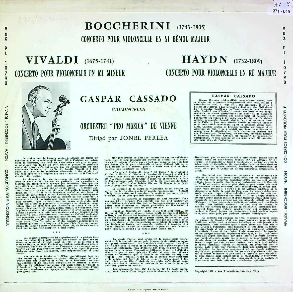 商品コード:1371-045[Pathé-VOX] G.カサド(vc)/Vc協奏曲集/ハイドン:2番, ヴィヴァルディ, ボッケリーニ:9番