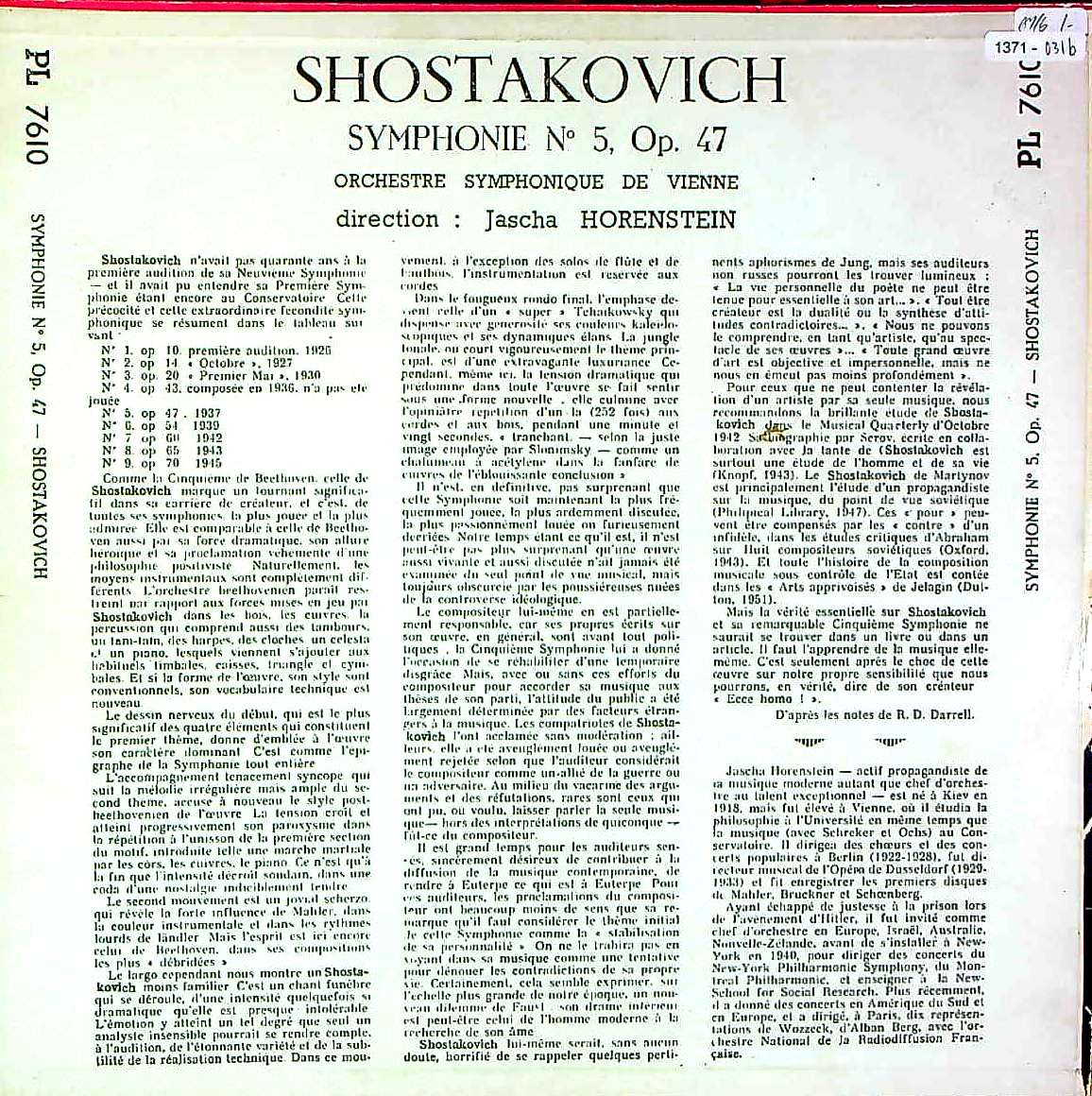 商品コード:1371-031b[Pathé-VOX] J.ホーレンシュタイン/ ショスタコーヴィチ:交響曲5番Op.47