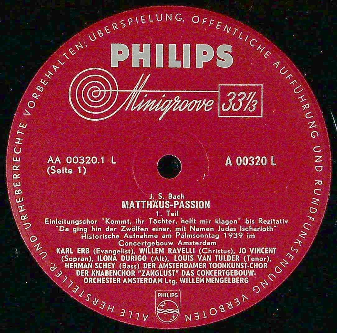 商品コード:1371-006[PHILIPS] W.メンゲルベルク/ バッハ:マタイ受難曲B.244(一部カットあり)