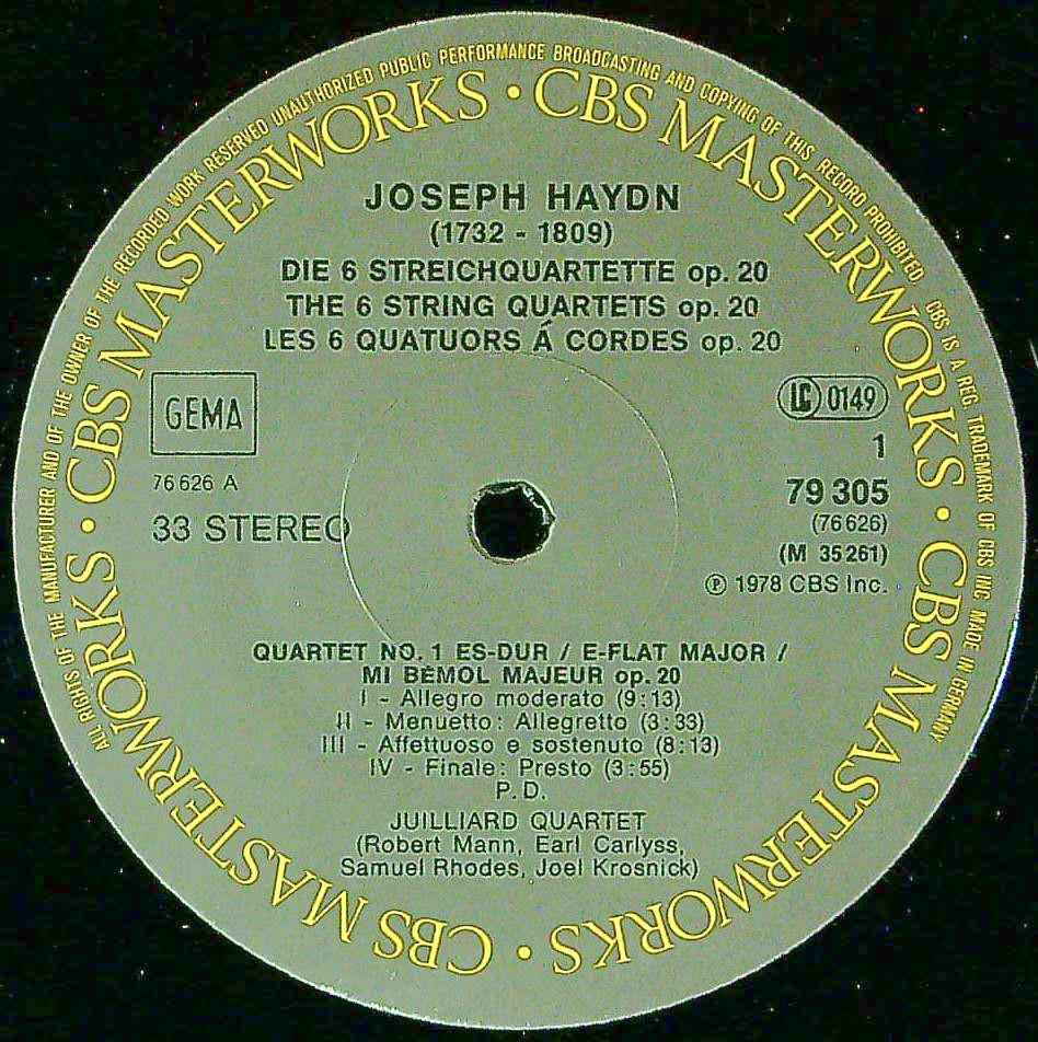 商品コード:BOX-1784[独CBS] ジュリアードQt. / ハイドン:6つのSQ.Op.20