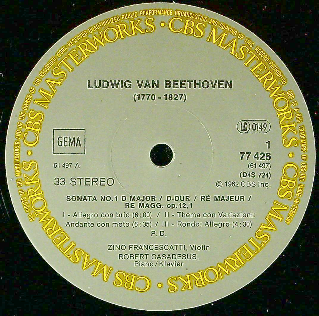 商品コード:BOX-1712[独CBS] Z.フランチェスカッティ(vn)/ ベートーヴェン:Vnソナタ全集(全10曲)