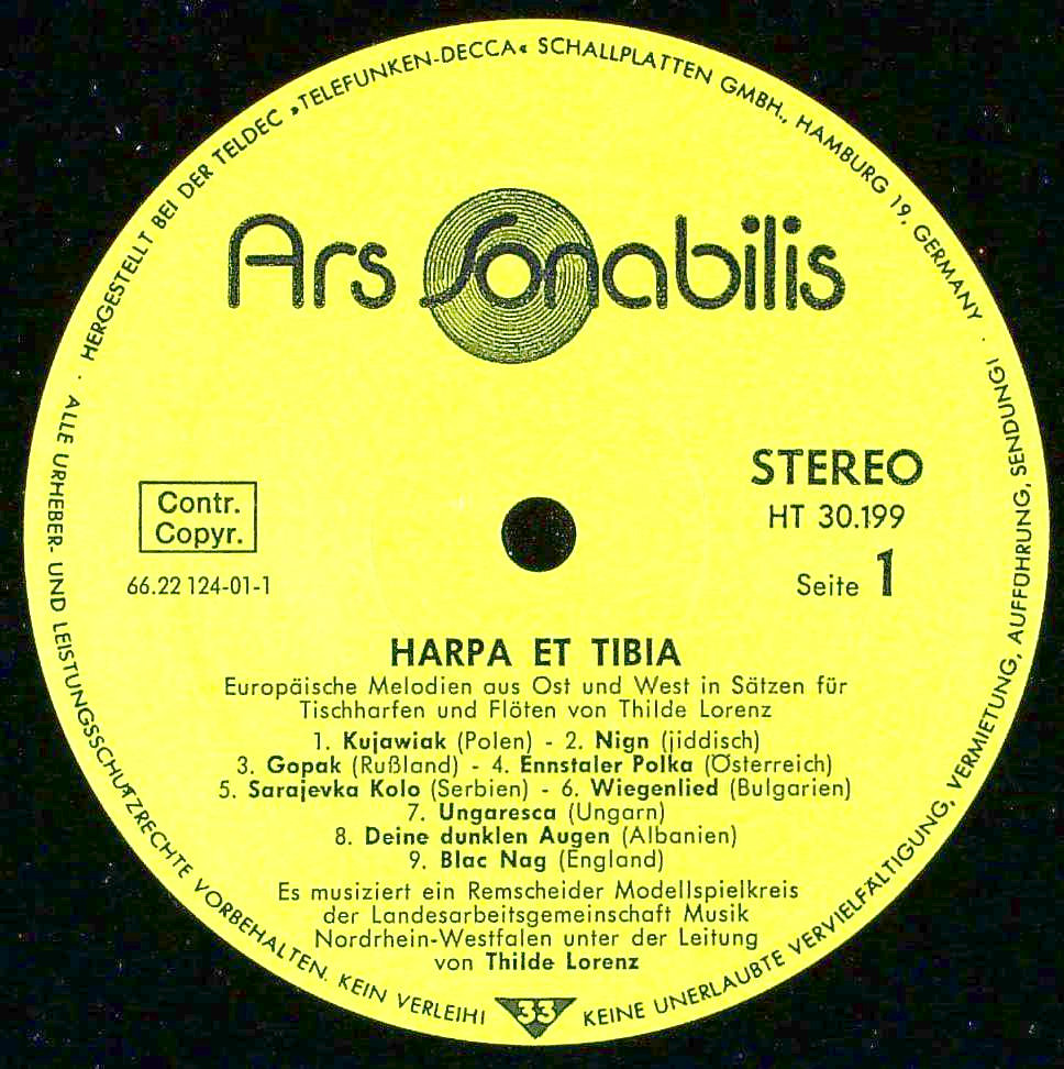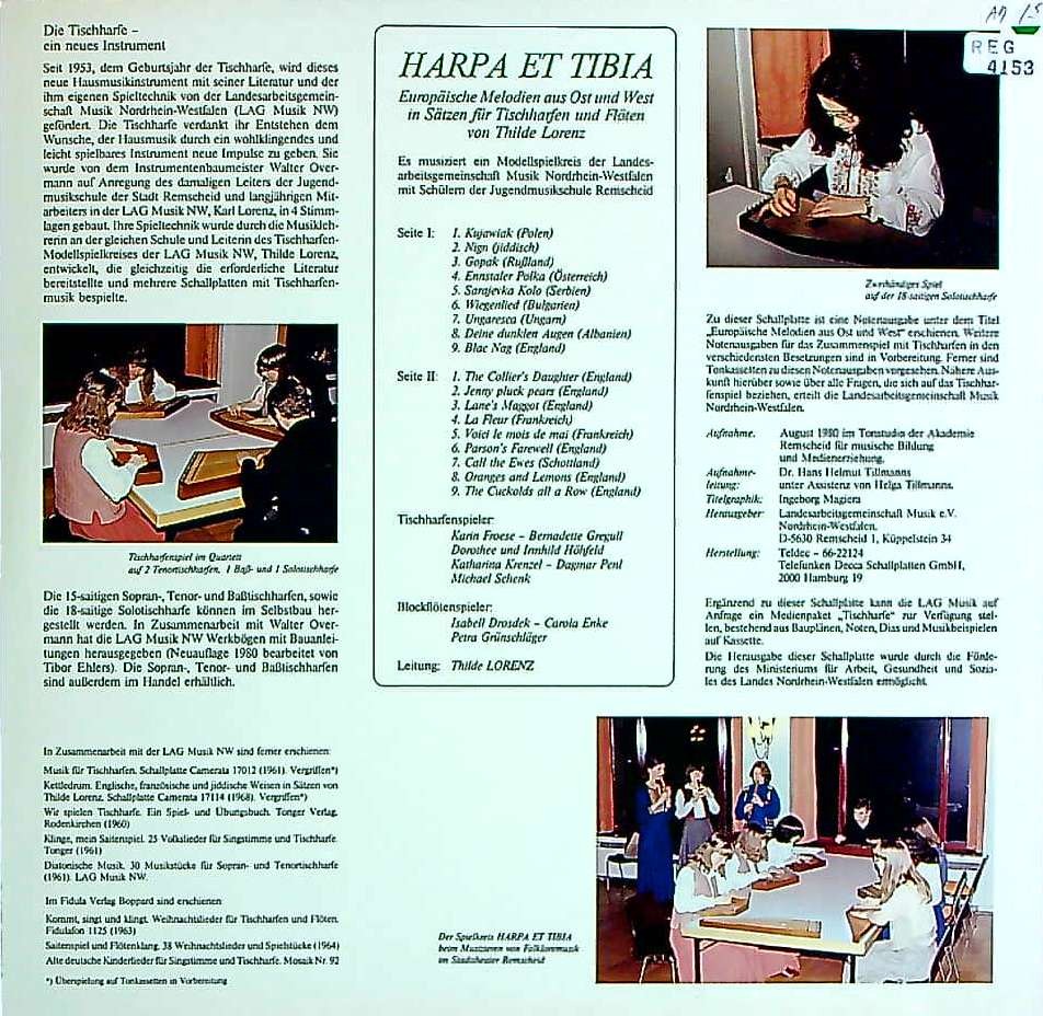 トピックス:黄/黒GG, 表コート, ジャケ裏面に解説, '80年8月レムシャイト音楽アカデミースタジオでの録音, テーブルハープ:1953年誕生の卓上型ハープ, ティビアード:古代の縦笛, テーブルハープの発展とレコード出版のためにアカデミー校長でもある音楽教育者ティルデ・ロレンツが編纂した作品, オリジナル, 初入荷