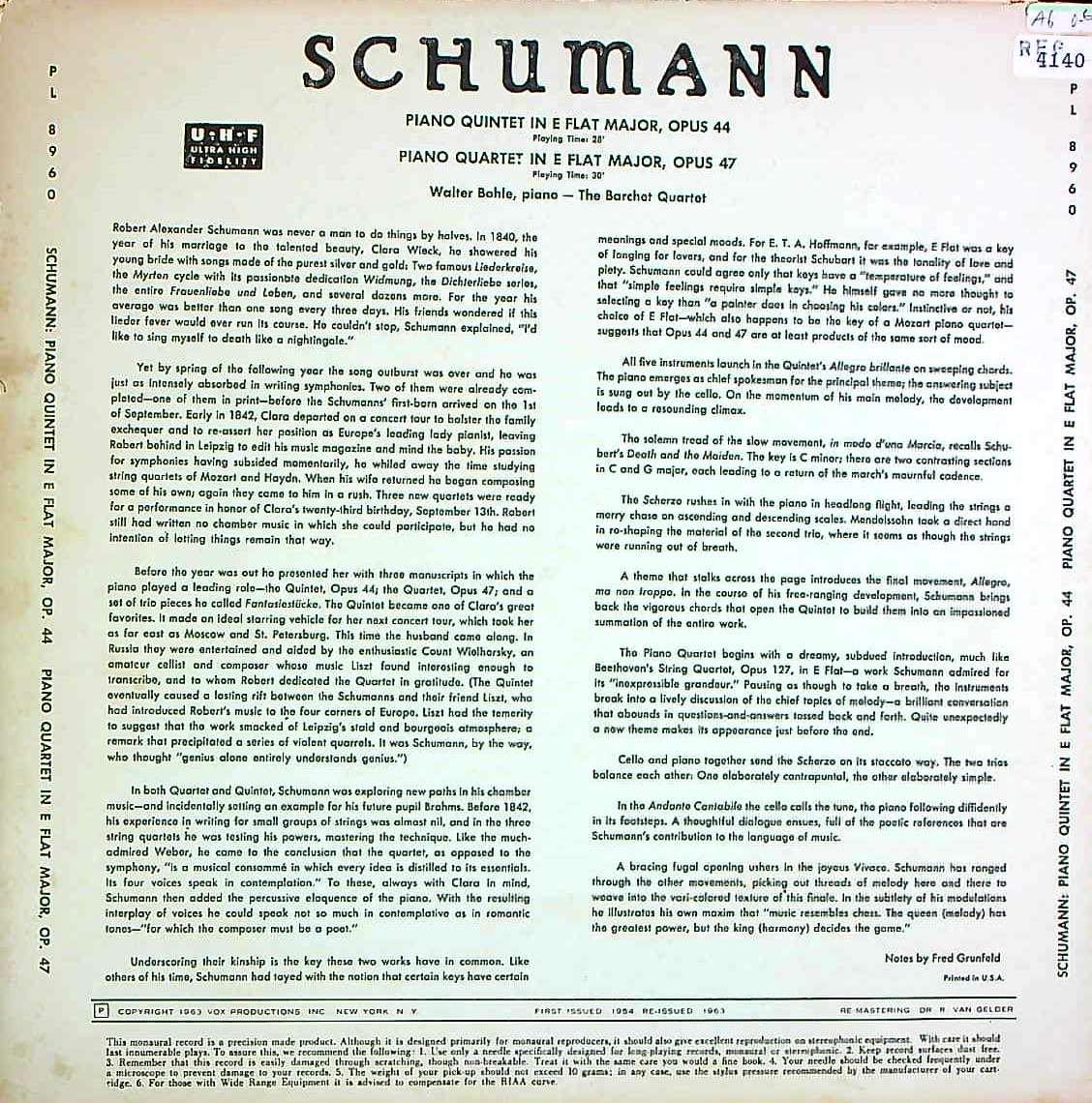 商品コード:REG-4140p[VOX] W.ボーレ(pf) バルヒェットQt. / シューマン:Pf五重奏曲, Pf四重奏曲