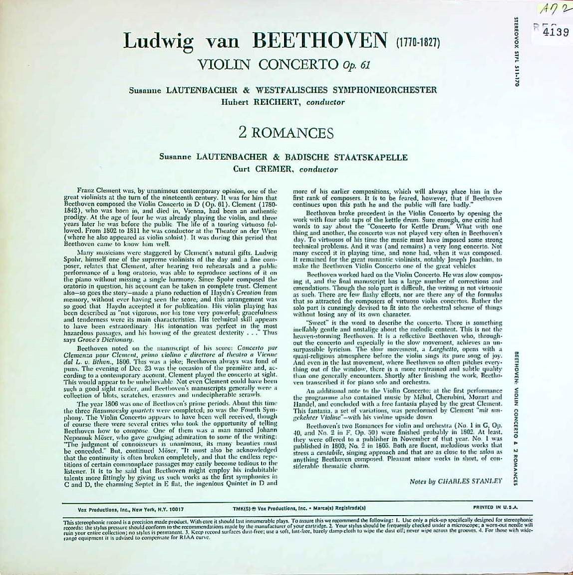 商品コード:REG-4139n[VOX] S.ラウテンバッハー(vn) / ベートーヴェン:Vn協奏曲, 2つのロマンス