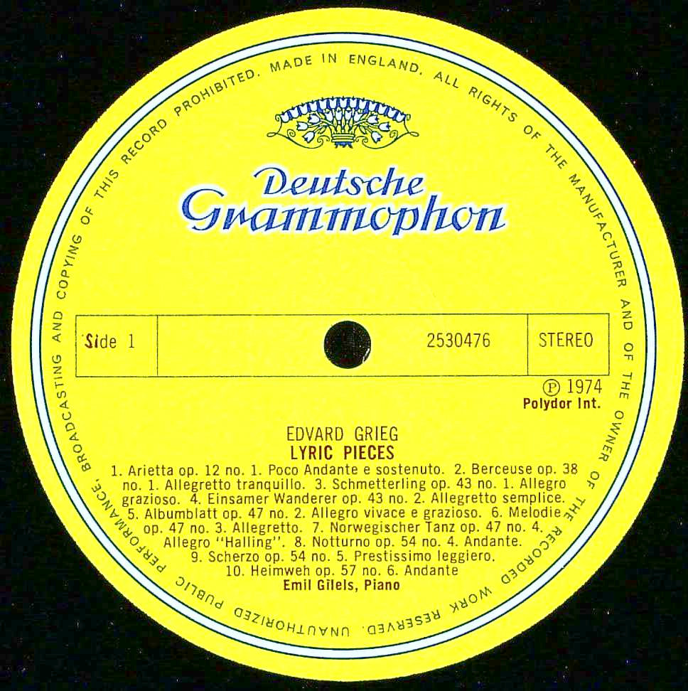 商品コード:1373-064nb[DGG] E.ギレリス(pf) / グリーグ:抒情小曲集(全10巻/66曲)~抜粋20曲