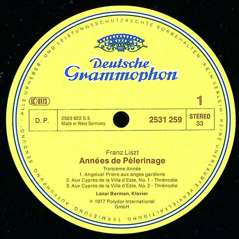 商品コード:1373-063[DGG] L.ベルマン(pf) / リスト:「巡礼の年」全集Vol.3/第3年(全7曲)