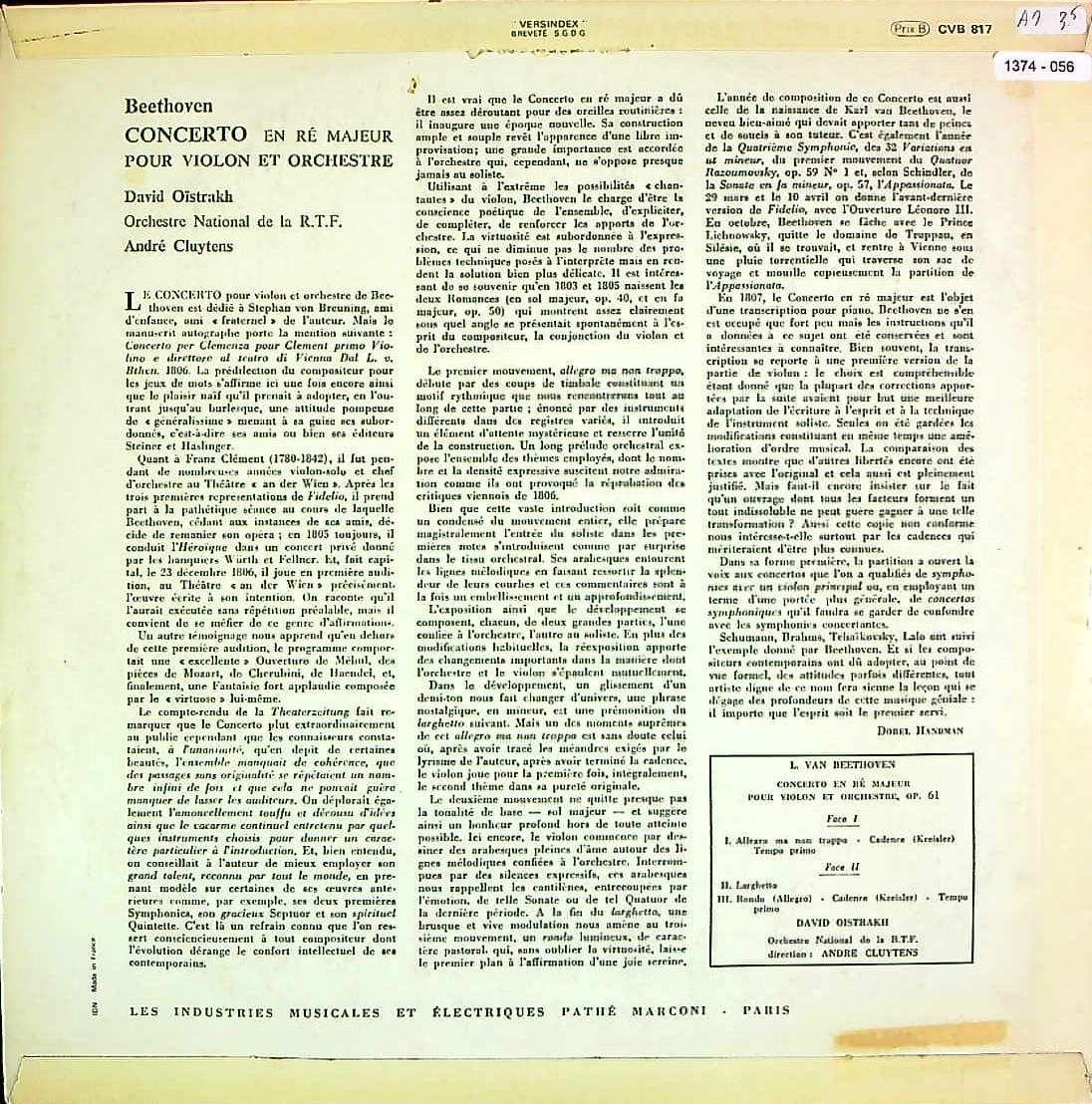 商品コード:1374-056[VSM] D.オイストラフ(vn)/ ベートーヴェン:Vn協奏曲