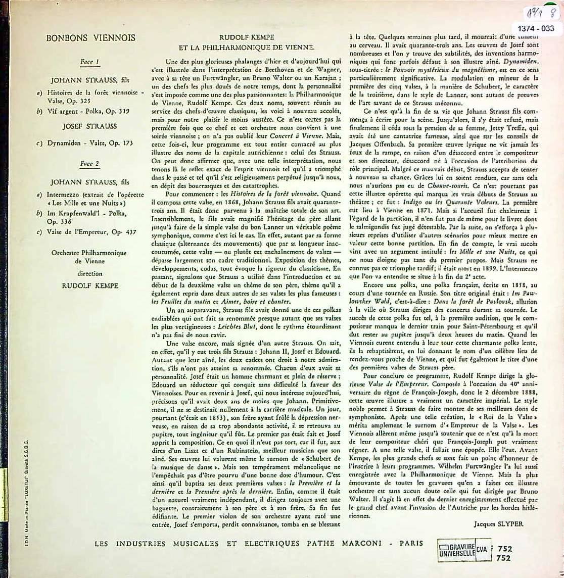商品コード:1374-033[VSM] R.ケンペ/ 「ウィーンのボンボン」J.シュトラウスⅡ:ウィーンの森の物語, 浮気心, 皇帝円舞曲 他