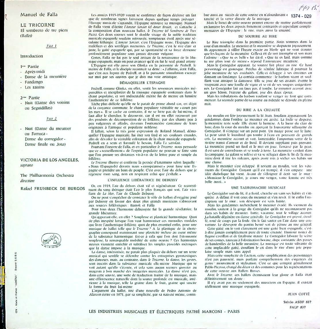 商品コード:1374-029[VSM] V.d.ロス・アンヘレス(s) R.フリューベック・デ・ブルゴス/ ファリャ:バレエ音楽「三角帽子」