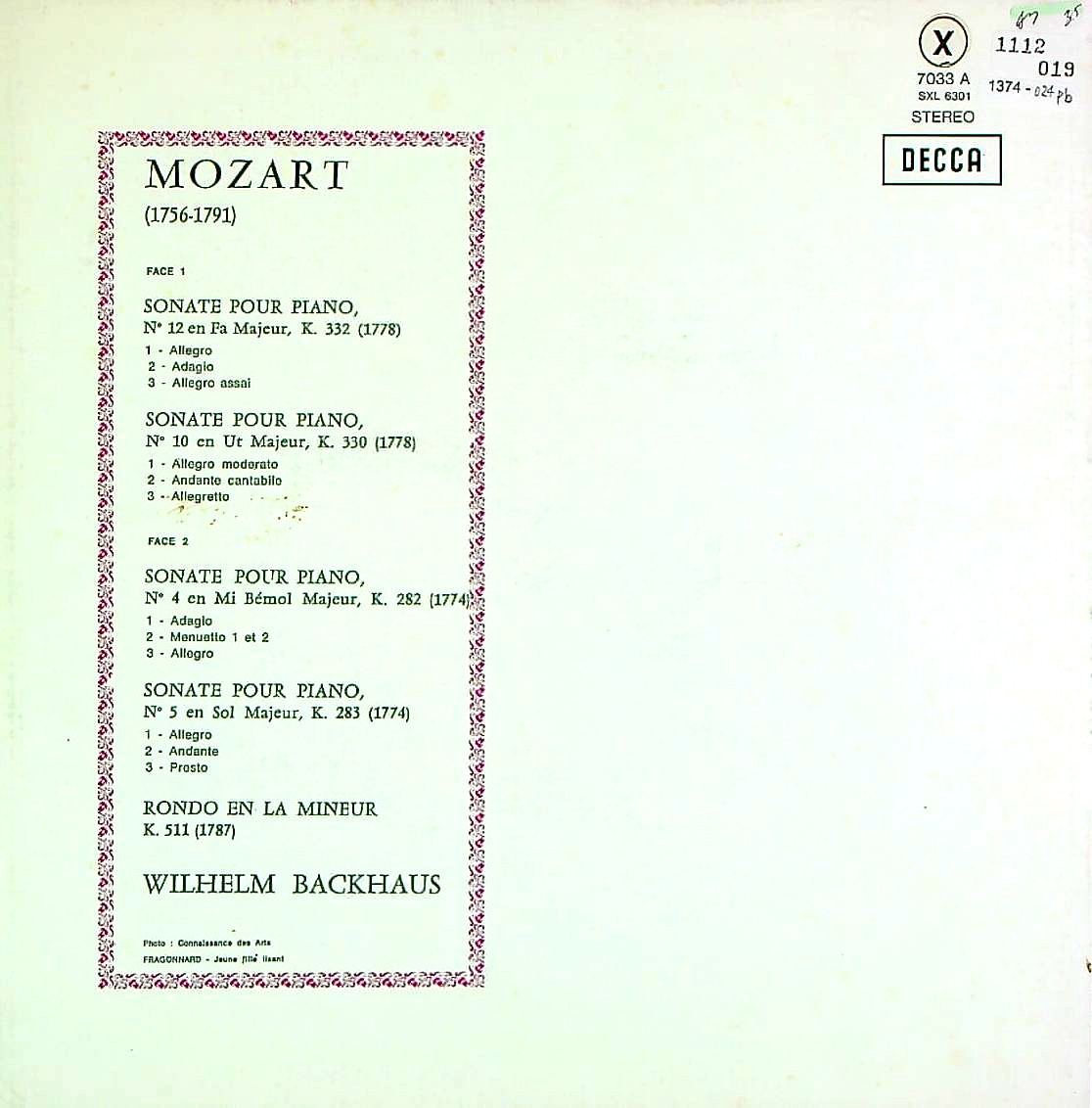 商品コード:1374-024pb[DECCA] W.バックハウス(pf) / モーツァルト:Pfソナタ集/12番K.332, 10番K.330, 4番.282, 5番K.283, ロンドK.511