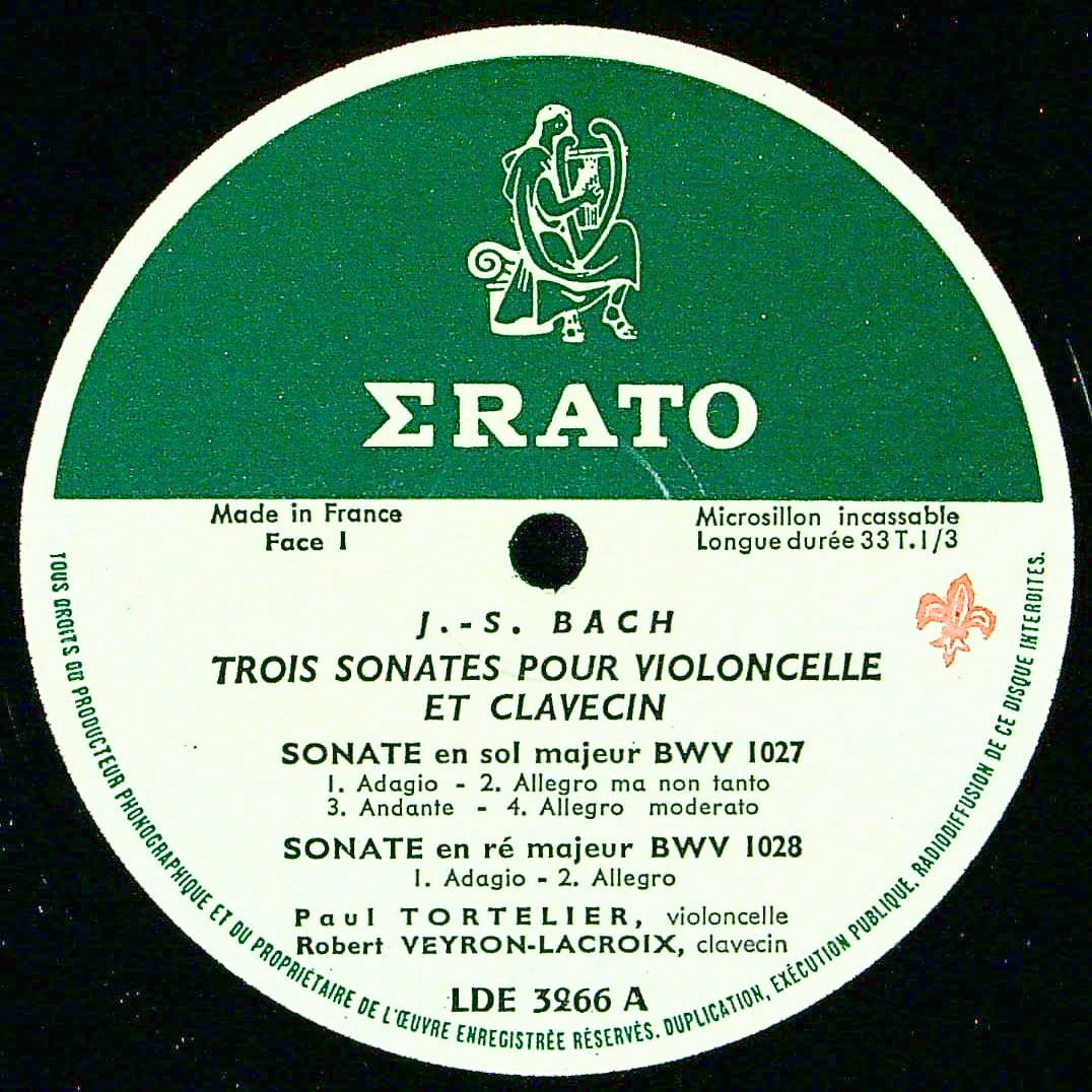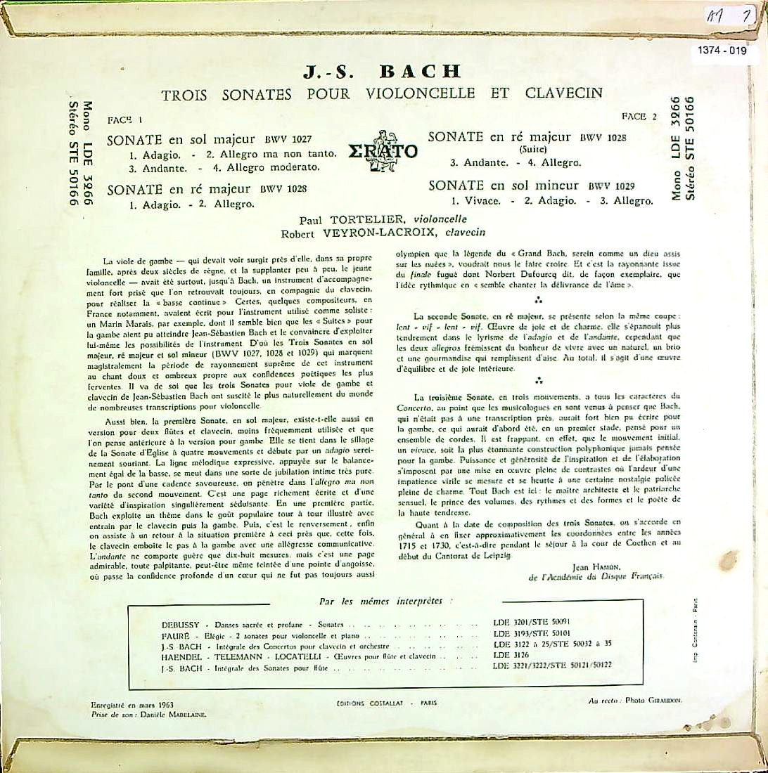 商品コード:1374-019[ERATO] P.トルトゥリエ(vc)/ バッハ:Vcソナタ1~3番B.1027~1029