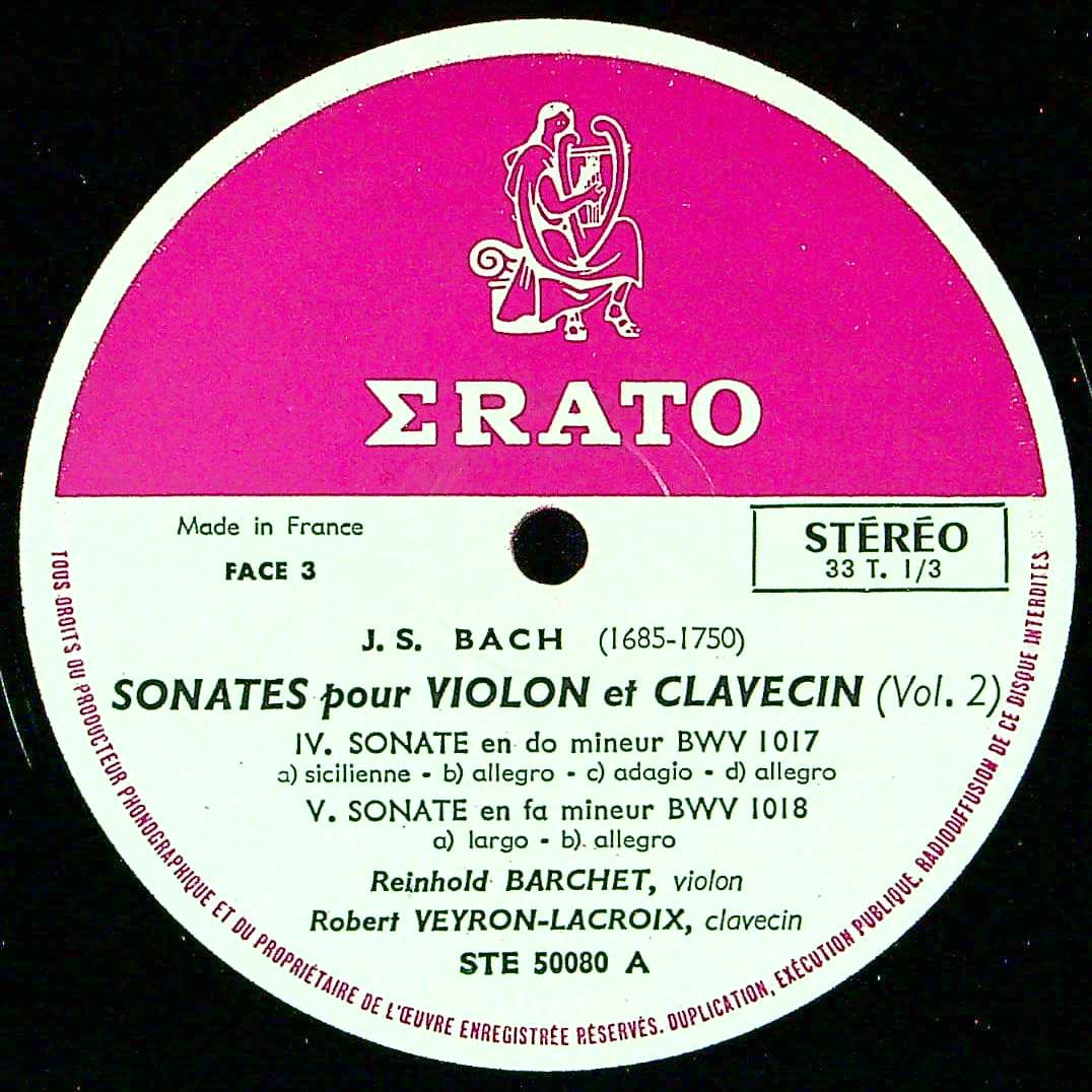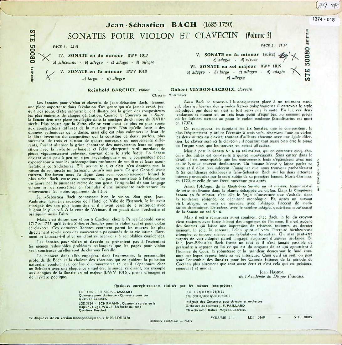 商品コード:1374-018[ERATO] R.バルヒェット(vn)/ バッハ:Vnソナタ集-2/Vnソナタ4~6番B.1017~1019