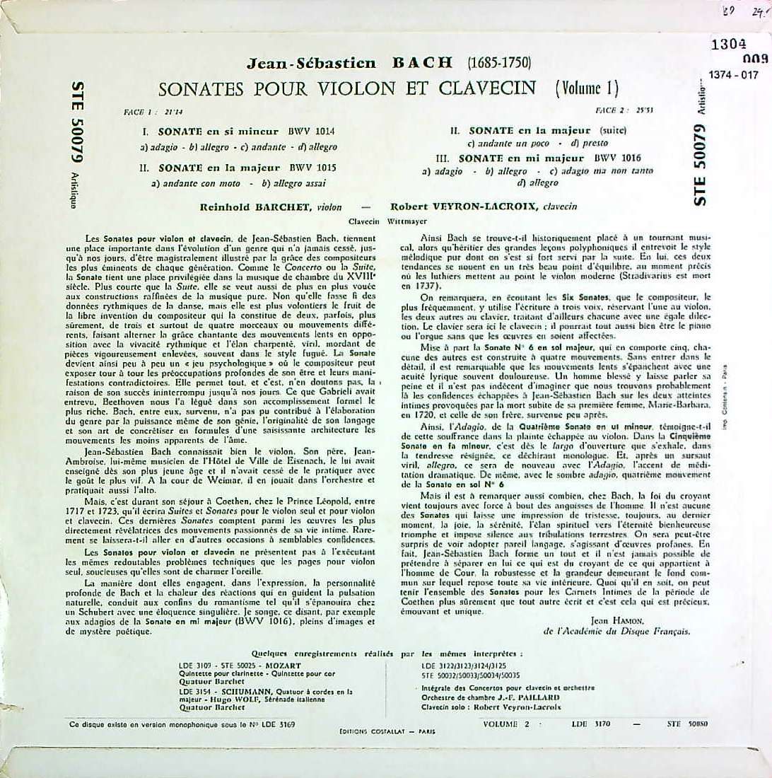 商品コード:1374-017[ERATO] R.バルヒェット(vn)/ バッハ:Vnソナタ集-1/Vnソナタ1~3番B.1014~1016