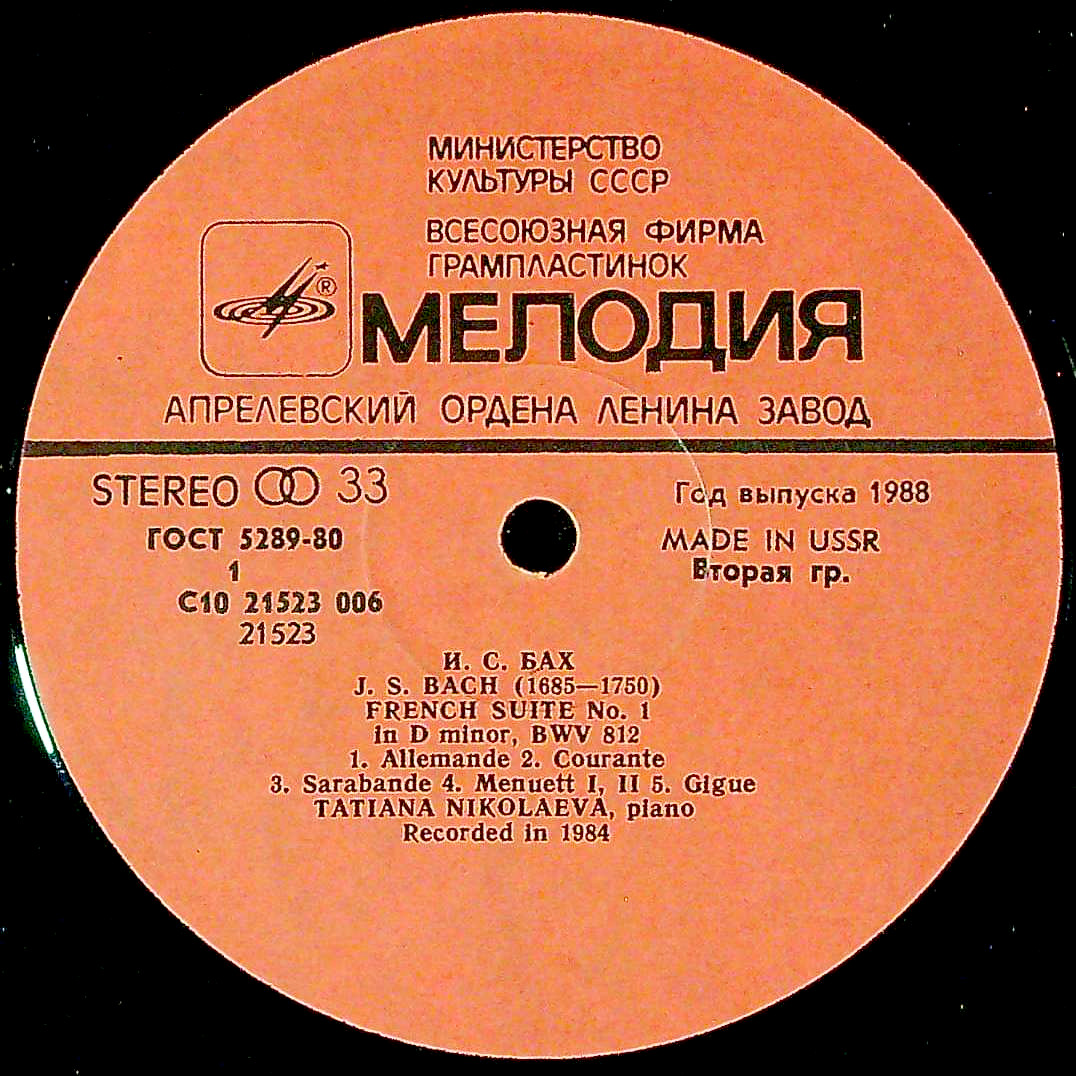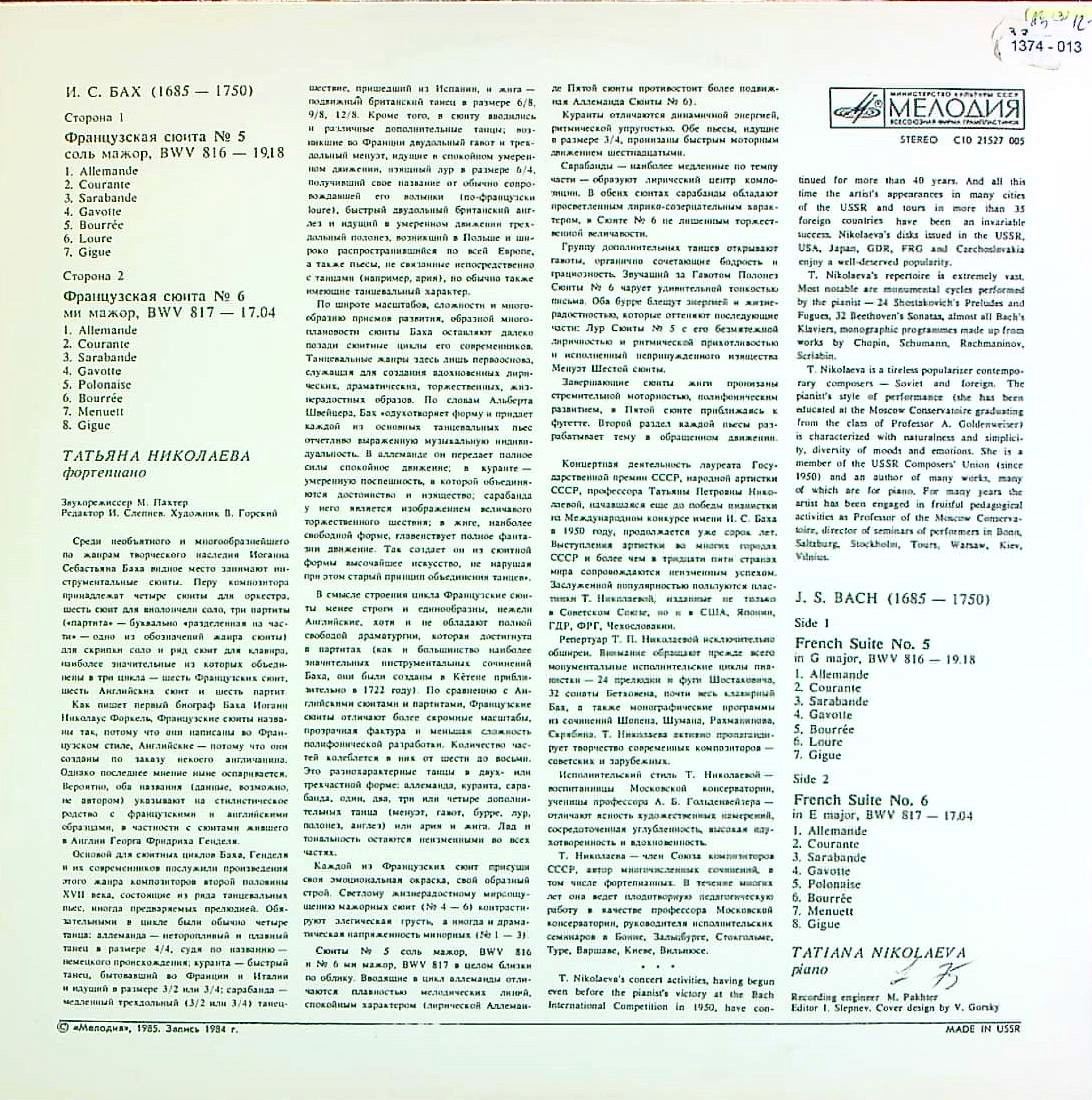 商品コード:1374-013n[MELODIYA] T.ニコラーエワ(pf) / バッハ:フランス組曲B.812-817