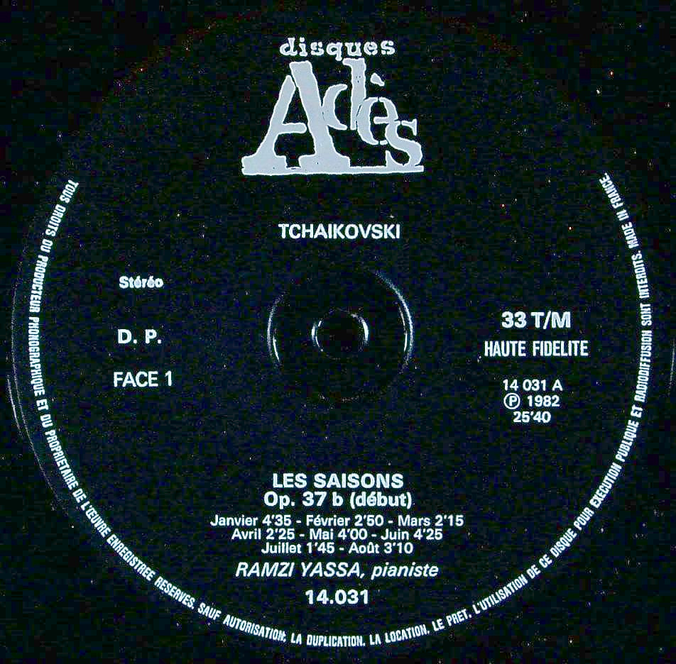 商品コード:REG-4189p[仏ADÈS] R.ヤッサ(pf) / チャイコフスキー:四季Op.37b(全曲), 2つの小品~ロシア風スケルツォOp.1-1