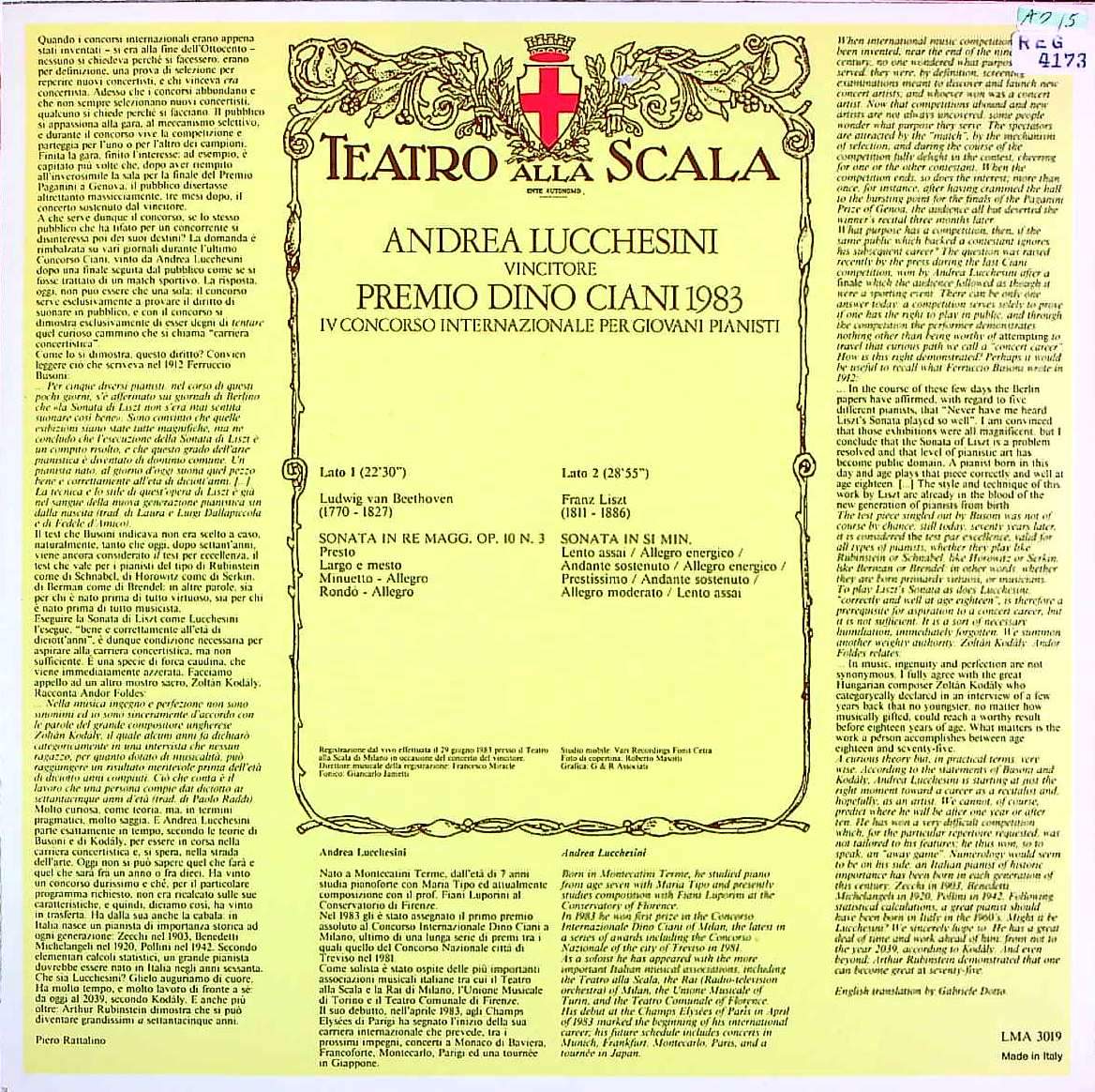 作品名:「ルケシーニ'83年ディノ・チアーニ国際ピアノ・コンクール1位獲得記念演奏会」ベートーヴェン:Pfソナタ7番Op.10-3, リスト:Pfソナタ ロ短調