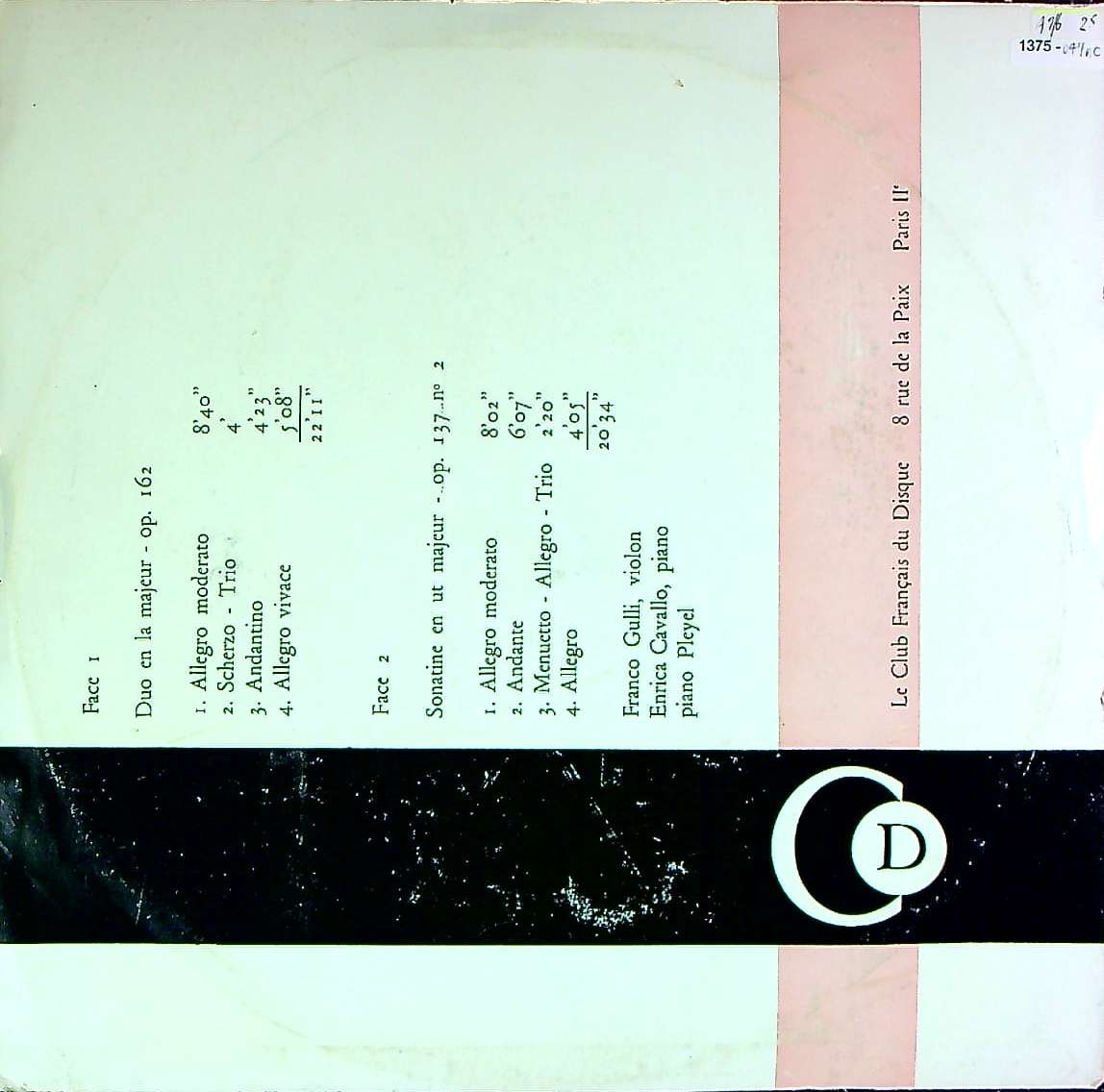商品コード:1375-047nc[Club Français] F.グッリ(vn)/ シューベルト:VnとPfのための二重奏曲Op.162, Vnソナチネ2番Op.137-2