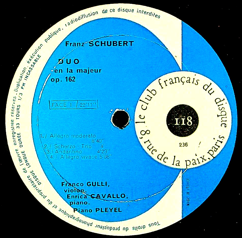 商品コード:1375-047[Club Français] F.グッリ(vn)/ シューベルト:VnとPfのための二重奏曲Op.162, Vnソナチネ2番Op.137-2