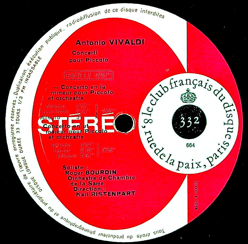 商品コード:1375-037[Club Français] R.ブルダン(fl-piccolo) G.F.ヘンデル(vn) 他/ ヴィヴァルディ:ピッコロ協奏曲(2曲), Vn協奏曲, 2Vn協奏曲, 3Vn協奏曲