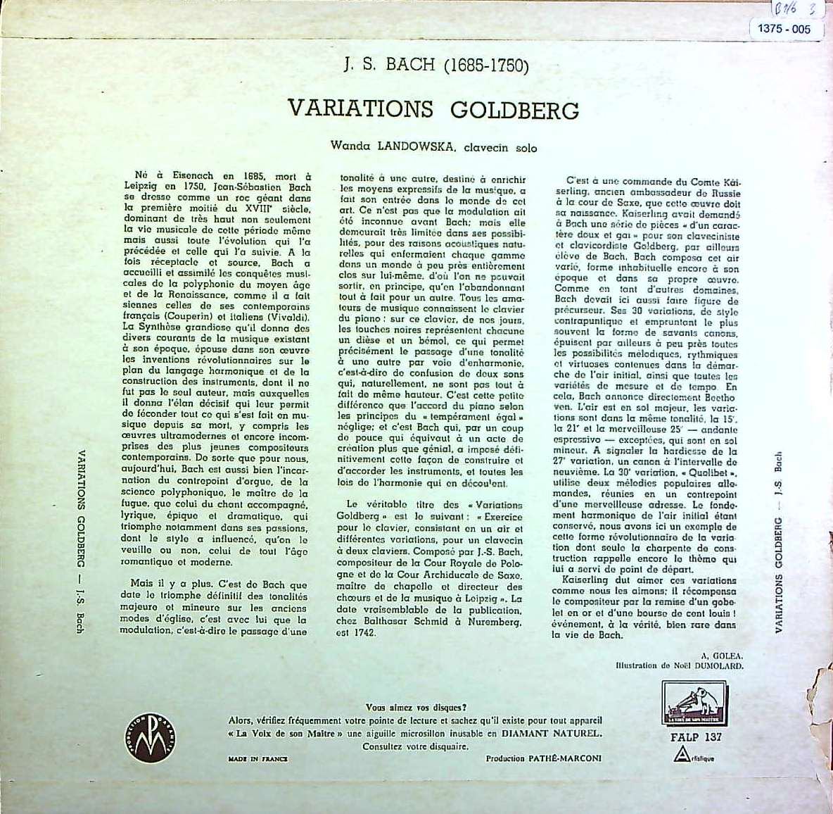 商品コード:1375-005[VSM] W.ランドフスカ(cemb) / バッハ:ゴルトベルク変奏曲