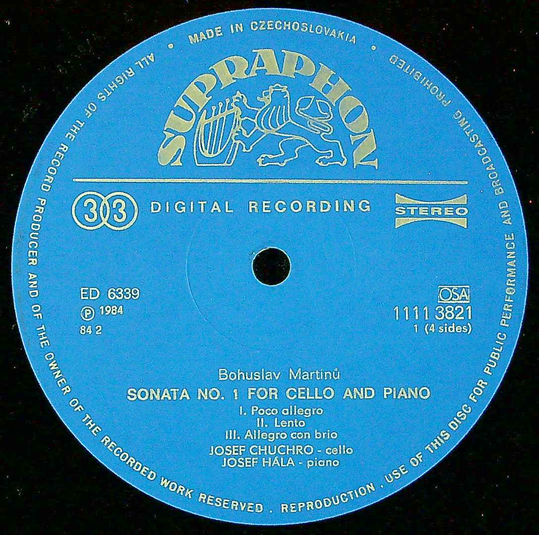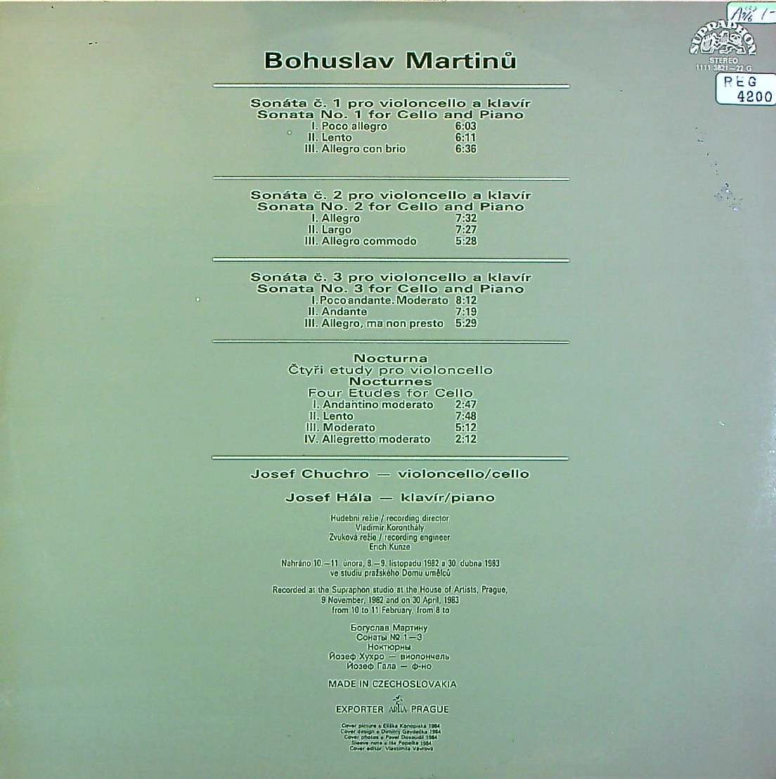 商品コード:REG-4200p[SUPRAPHON] J.フッフロ(vc)/ マルティヌー:Vcソナタ1, 2, 3番, 4つの夜想曲(Vcのための練習曲)