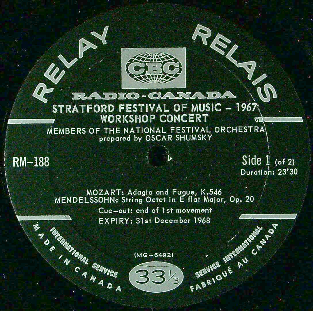 作品名:「ストラトフォード・フェスティバル・1967年ワークショップ・コンサート」モーツァルト:アダージョとフーガK.546, 弦楽八重奏曲Op.20