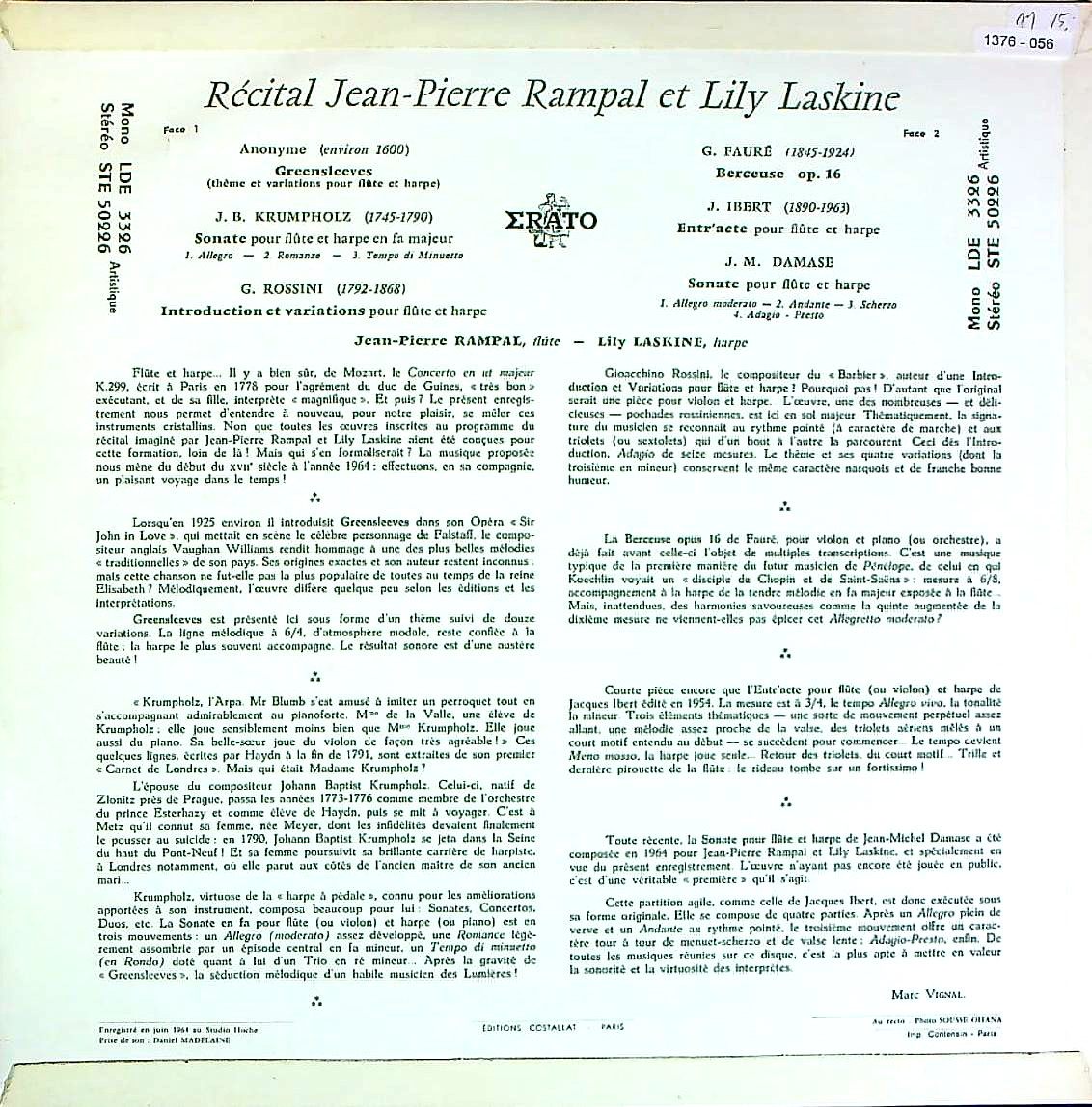 商品コード:1376-056[ERATO] J.P.ランパル(fl) L.ラスキーヌ(hp) / リサイタル/グリーンスリーブス, クルンプホルツ, ロッシーニ, フォーレ, イベール, ダマーズ