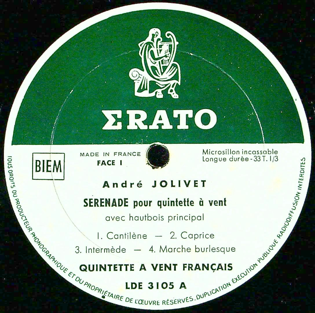 商品コード:1376-038p[ERATO] フランス管楽五重奏団/ ジョリヴェ:セレナーテ(木管五重奏曲), フランセ:木管五重奏曲1番
