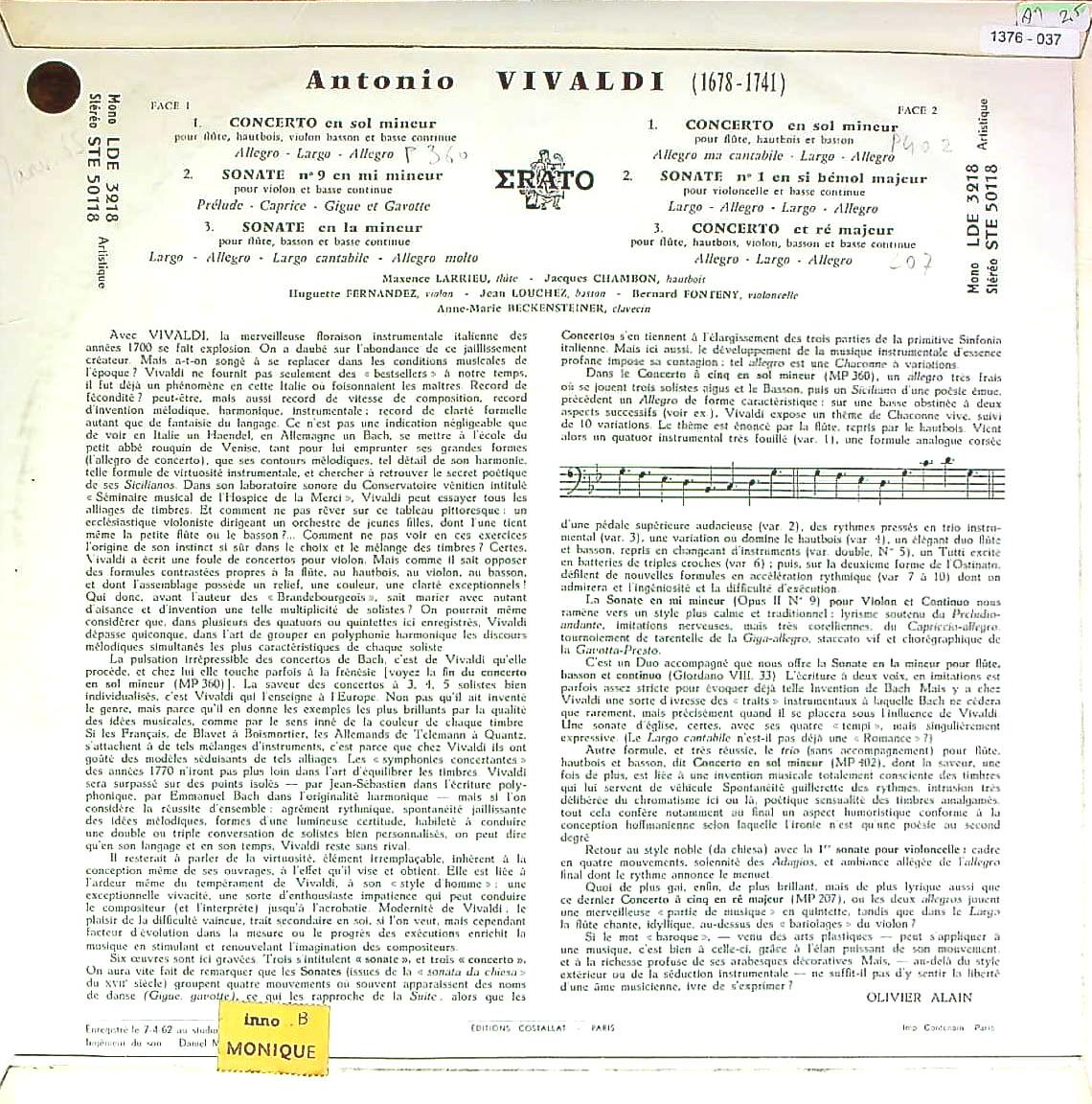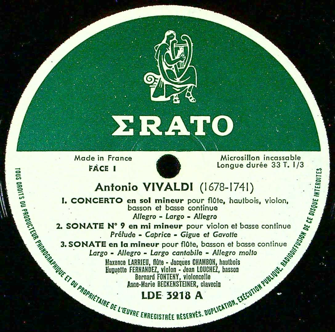 商品コード:1376-037p[ERATO] M.ラリュー(fl) J.シャンボン(ob) 他/ ヴィヴァルディ:Fl, Ob, Vn, Fgの協奏曲, Vnソナタ, Fl, Obソナタ 他