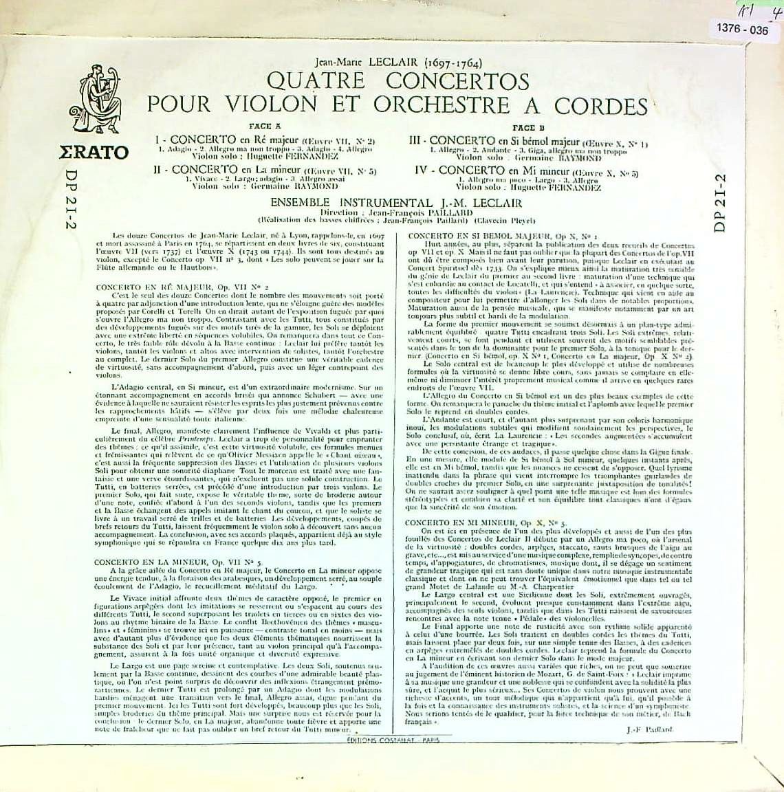商品コード:1376-036p[ERATO] H.フェルナンデス, G.レイモン(vn)/ ルクレール:Vn協奏曲集(4曲)