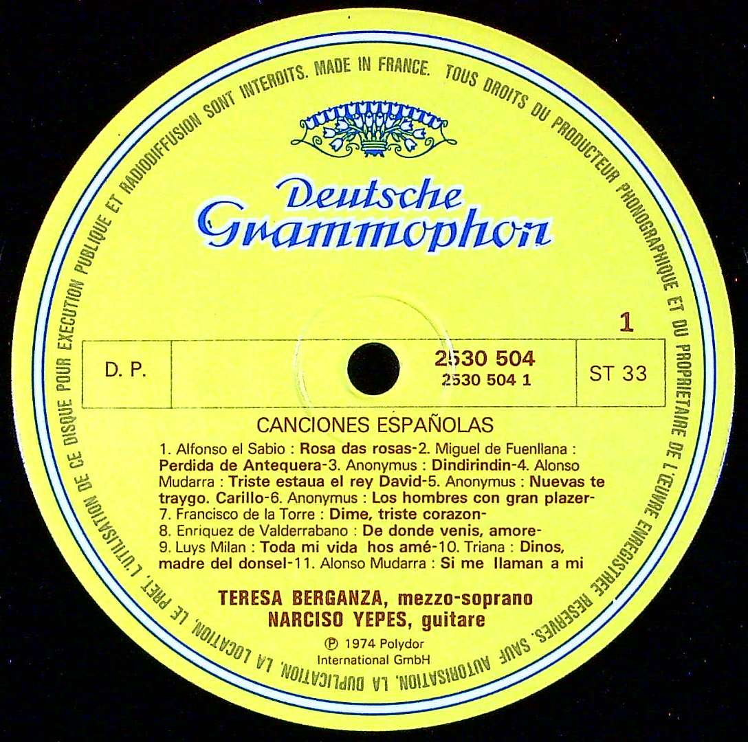 商品コード:1376-028[DGG] T.ベルガンサ(ms) N.イエペス(g) / スペイン歌曲集/サビオ, ミラン, ムダーラ, ナルヴァエス, トッレ 他
