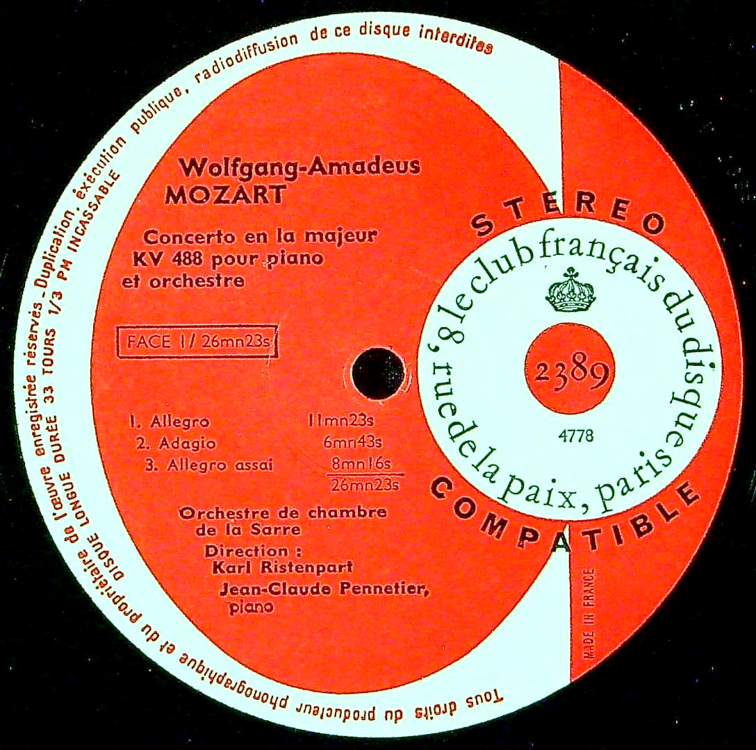 商品コード:1376-016b[Club Français] J.C.ペヌティエ(pf)/ モーツァルト:Pf協奏曲23番K.488, 15番K.450