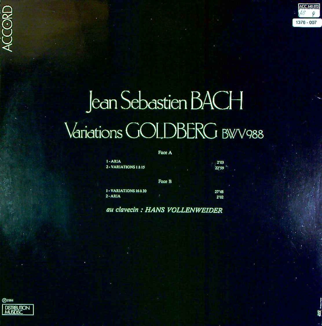 商品コード:1376-007[ACCORD] H.ヴォレヴェイダー(cemb) / バッハ:ゴルトベルク変奏曲B.988