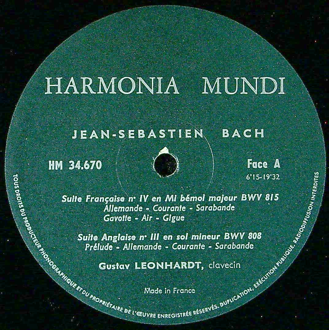 商品コード:1376-004[Harmonia Mundi] G.レオンハルト(cemb) / バッハ:Cemb作品集/フランス組曲4番B.815, イギリス組曲3番B.808 他