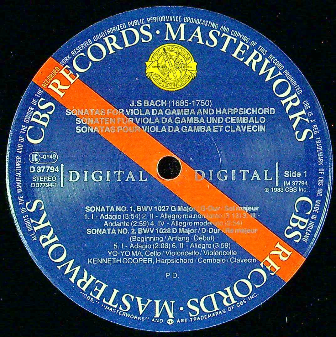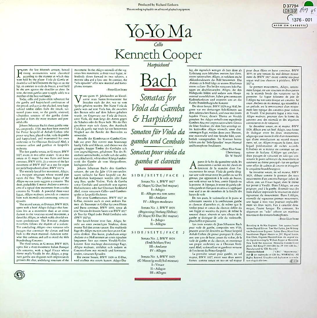 商品コード:1376-001[CBS] ヨーヨー・マ(vc)/ バッハ:3つのVcソナタ/Vcソナタ1番B.1027, Vcソナタ2番B.1028, Vcソナタ3番B.1029