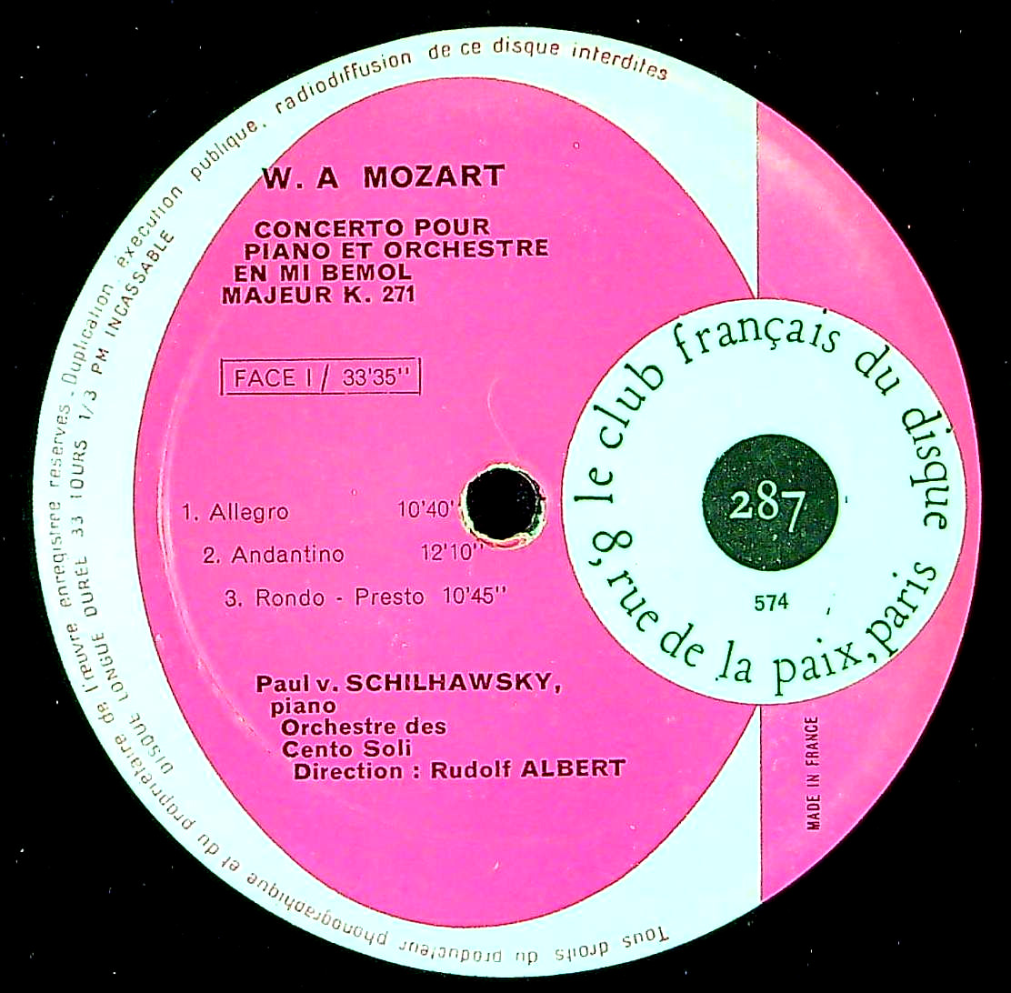 商品コード:REG-4225[仏Club Français] P.v.シルハフスキー(pf)/ モーツァルト:Pf協奏曲9番K.271, 21番K.467