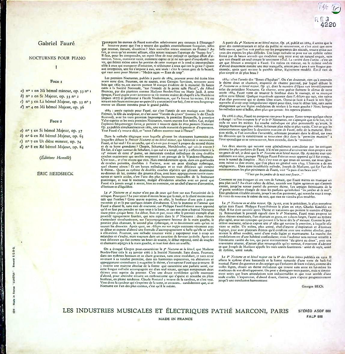 商品コード:REG-4220[仏VSM] E.ハイドシェック(pf) / 「フォーレ:夜想曲集 Vol.1」1~8番(全8曲)