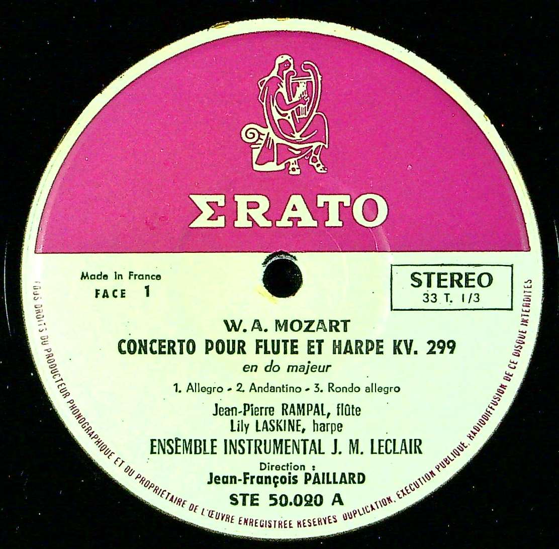 商品コード:REG-4217[仏ERATO] J.P.ランパル(fl)L.ラスキーヌ(hp) J.ランスロ(cl)/ モーツァルト:Fl・Hp協奏曲K.299, Cl協奏曲K.622