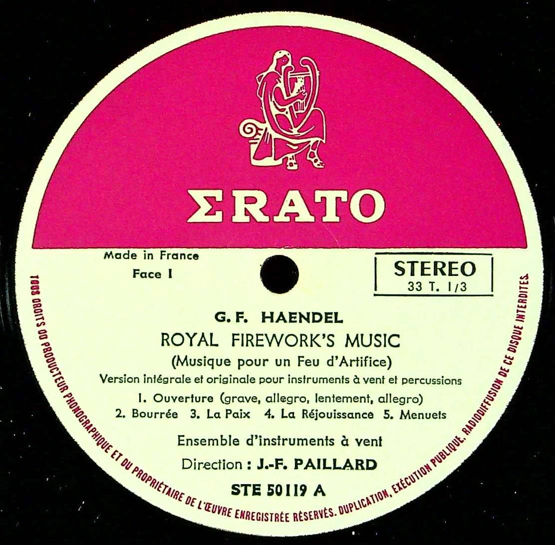 商品コード:REG-4215[仏ERATO] J.F.パイヤール / ヘンデル:王宮の花火の音楽, 二重協奏曲, Ob協奏曲