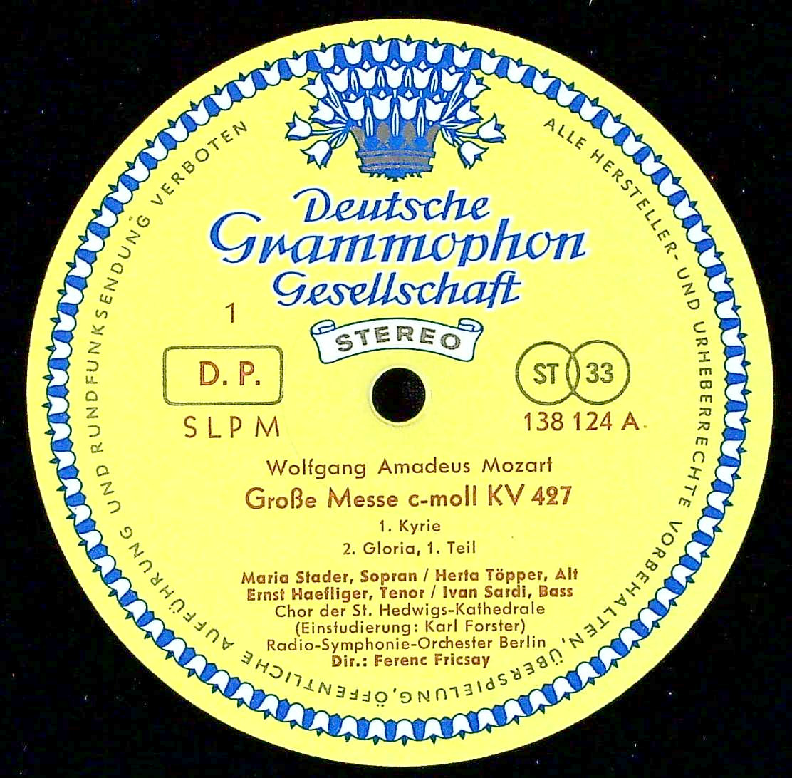 商品コード:REG-4209[仏DGG] F.フリッチャイ/ モーツァルト:大ミサ曲K.427