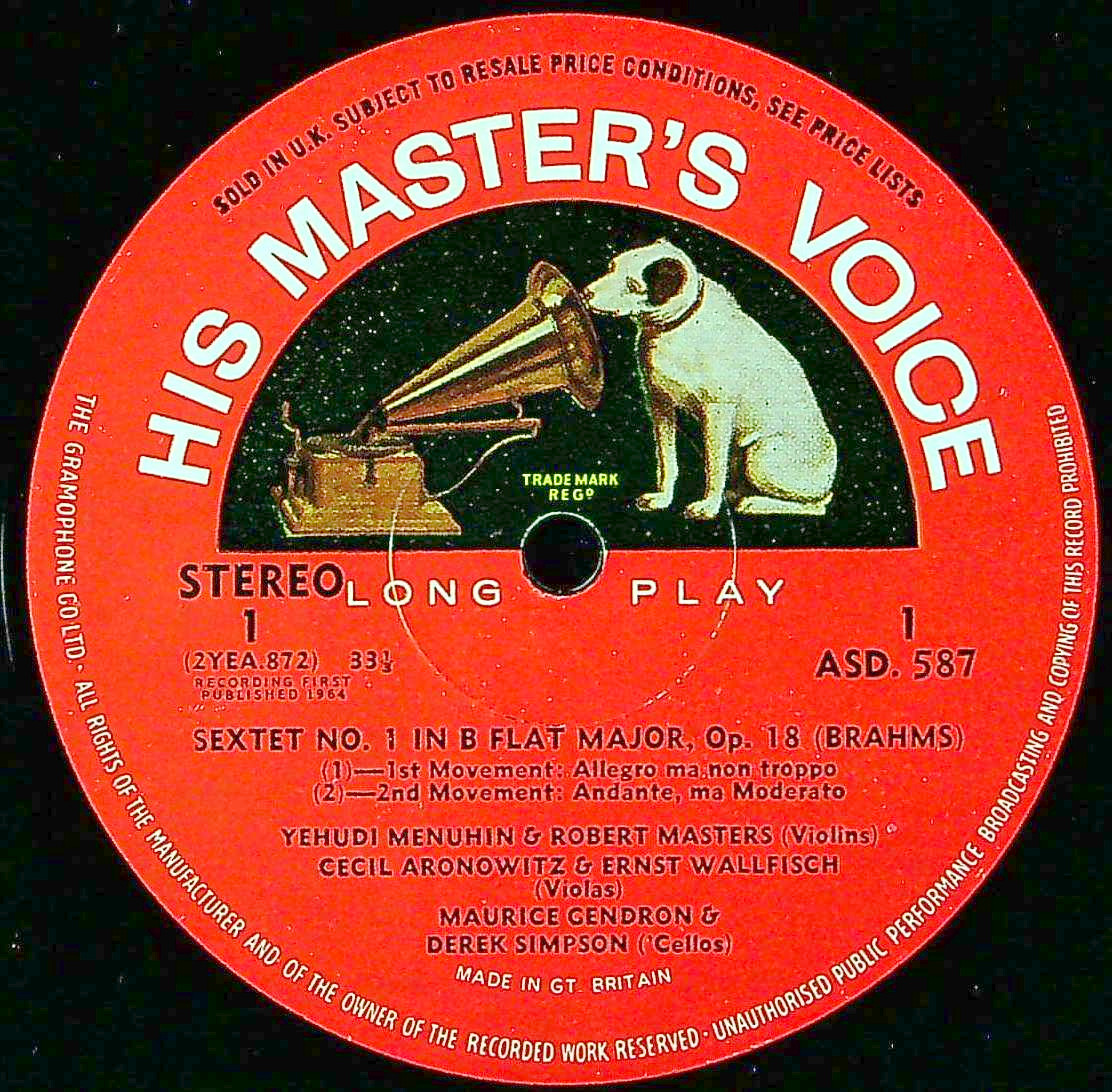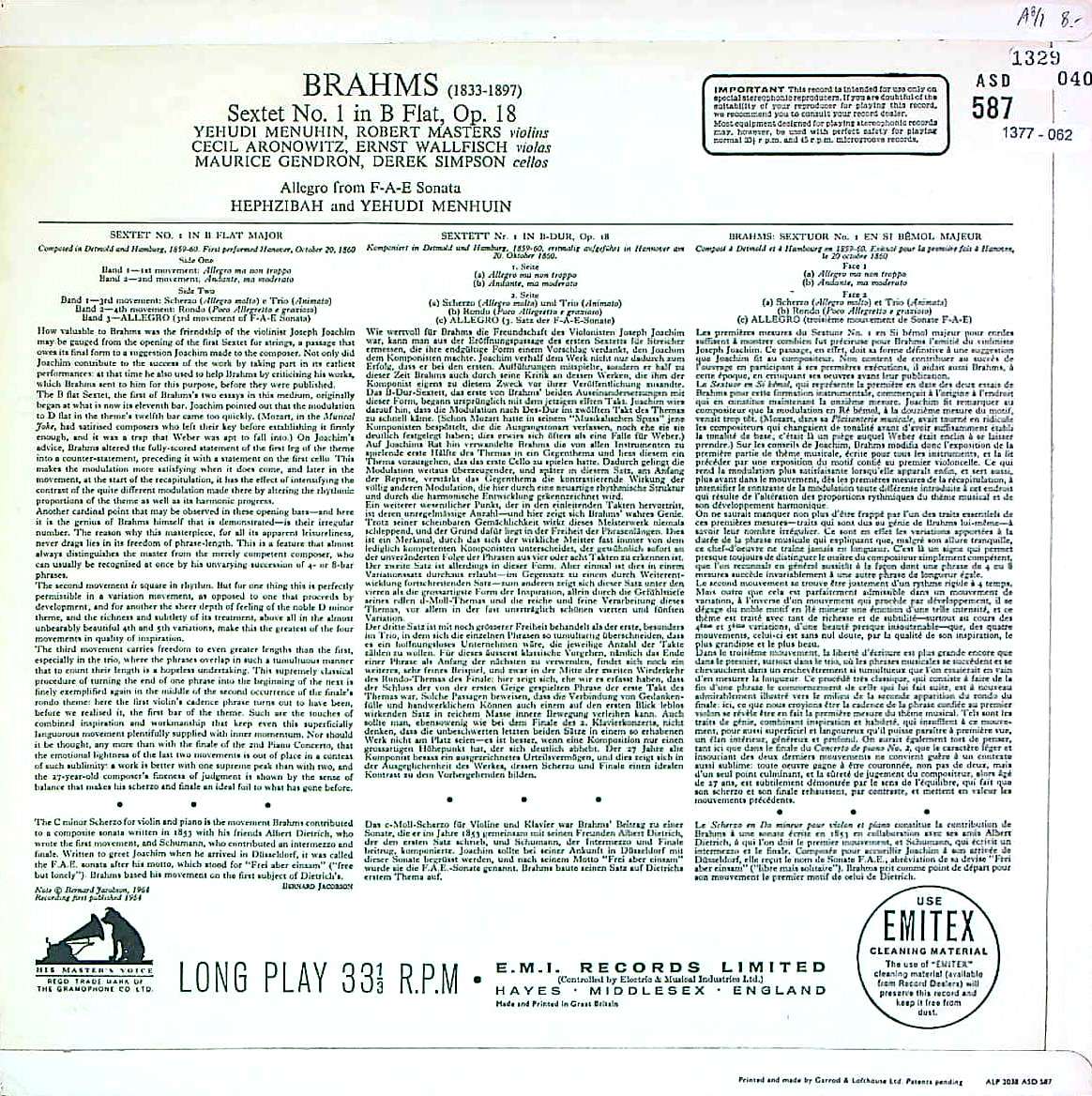 商品コード:1377-062[HMV] Y.メニューイン, R.マスターズ(vn) 他/ ブラームス:弦楽六重奏曲1番, F.A.E.のソナタ~第3楽章