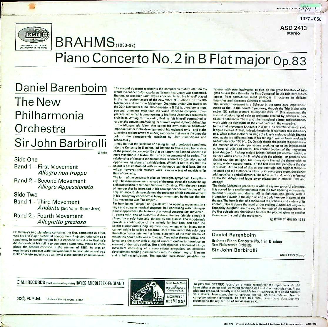 商品コード:1377-056p[HMV] D.バレンボイム(pf) / ブラームス:Pf協奏曲2番Op.83