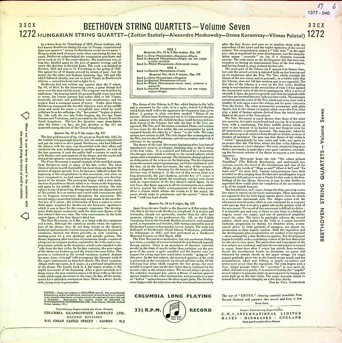 商品コード:1377-040[COLUMBIA] ハンガリーQt. / ベートーヴェン:弦楽四重奏曲全集vol.7/弦楽四重奏曲12, 16番