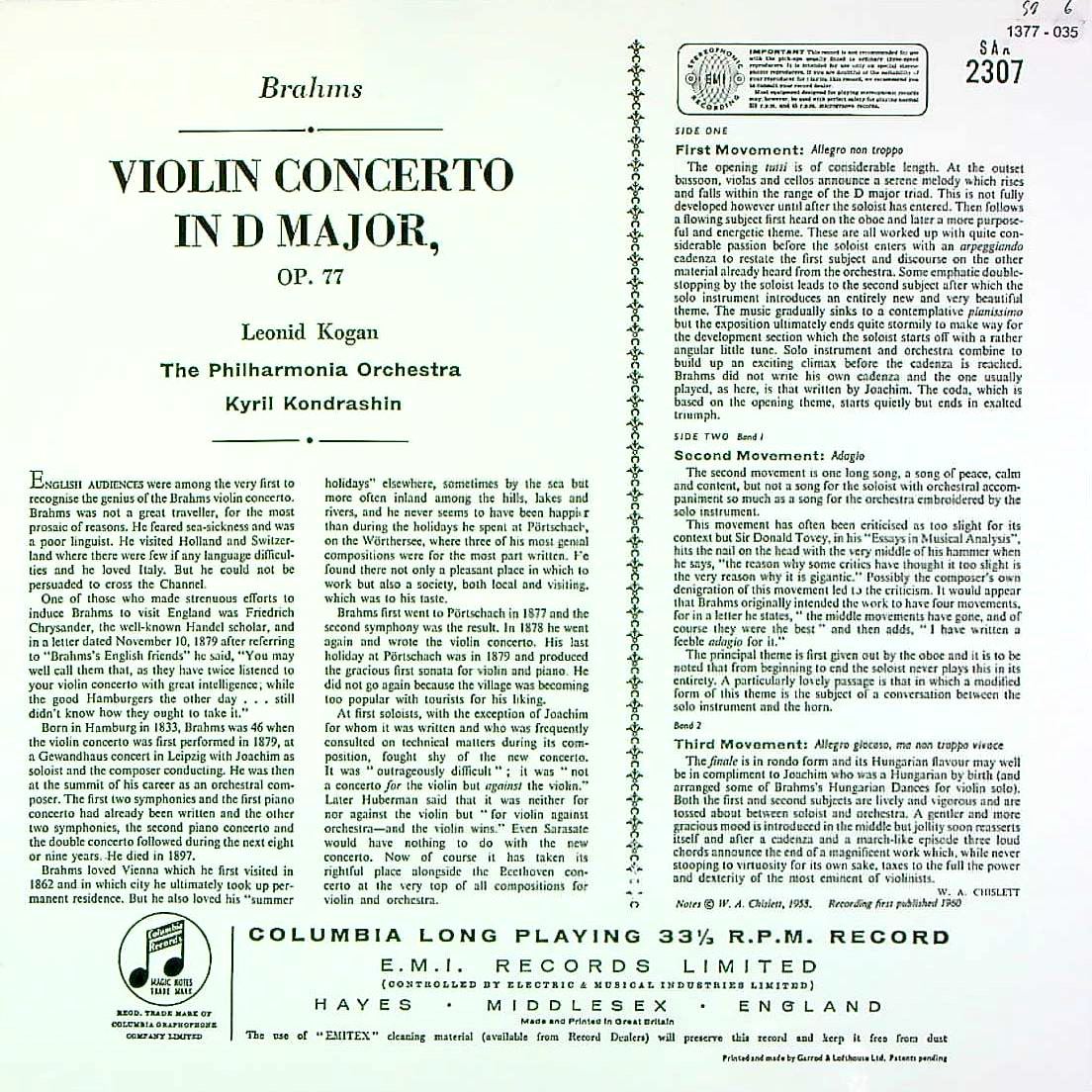 商品コード:1377-035[COLUMBIA(Testament)] L.コーガン(vn)/ ブラームス:Vn協奏曲Op.77