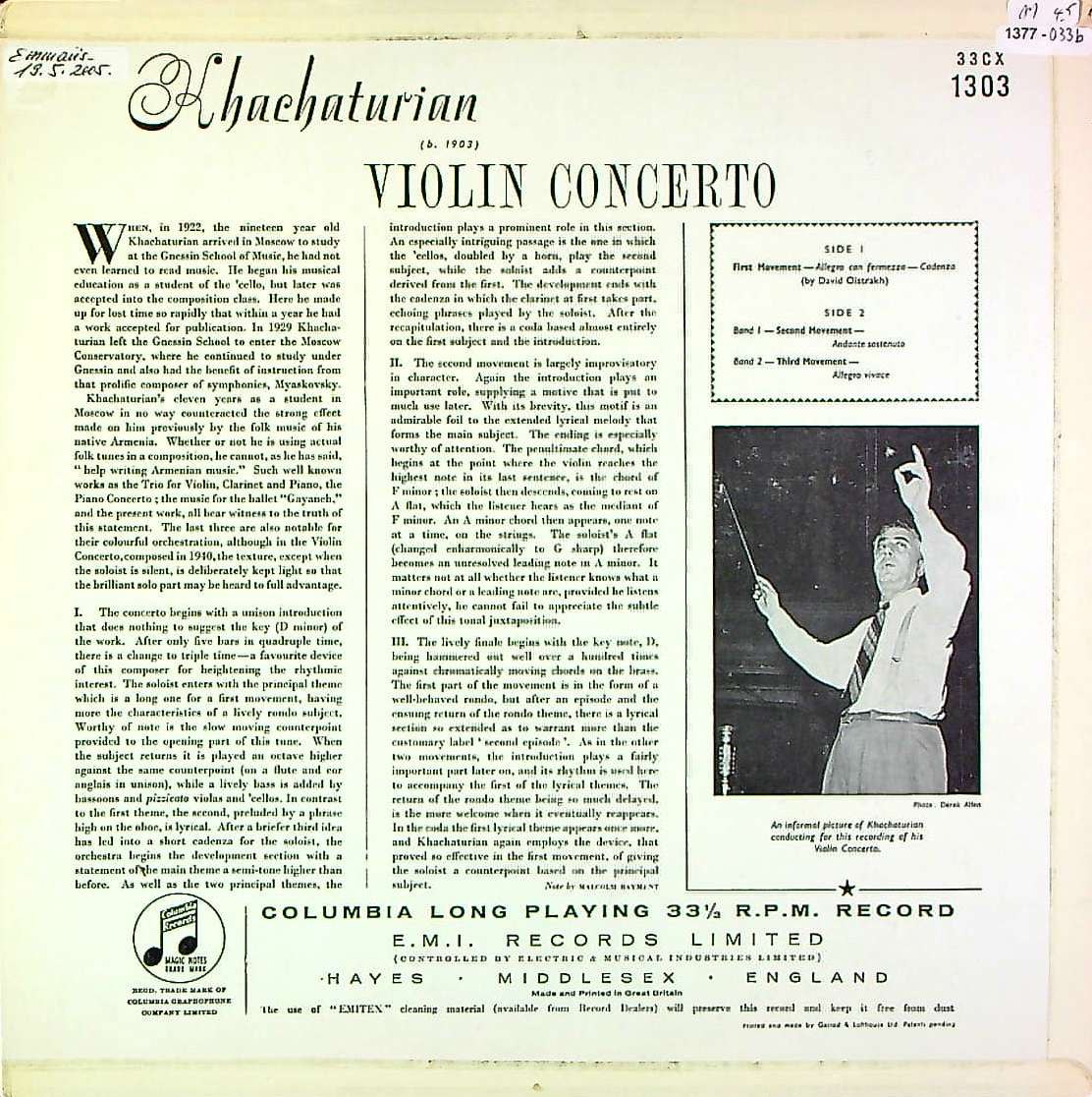商品コード:1377-033b[COLUMBIA] D.オイストラフ(vn)/ ハチャトゥリアン:Vn協奏曲 ニ短調