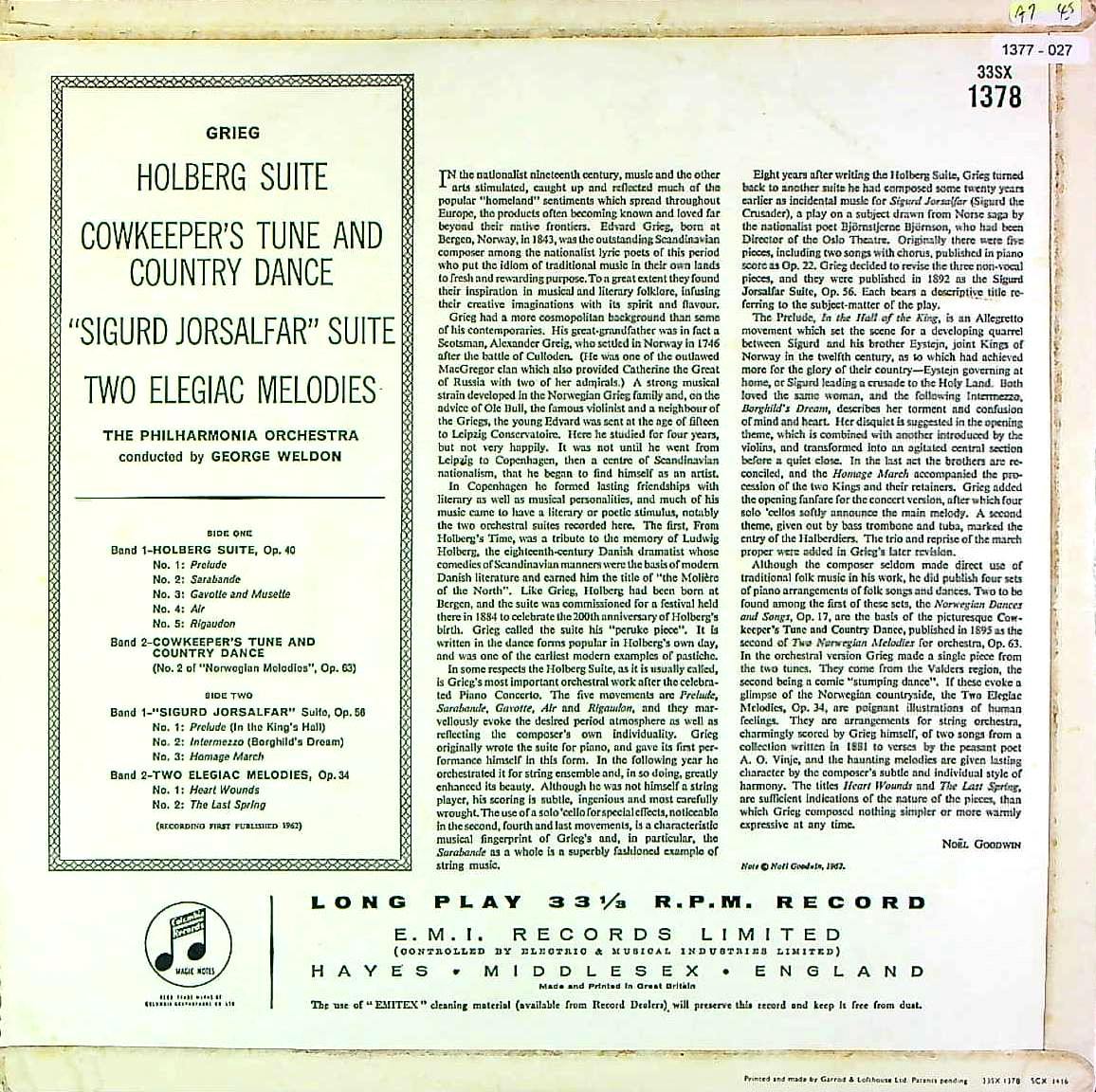 商品コード:1377-027n[COLUMBIA] G.ウェルドン/ グリーグ:管弦楽作品集